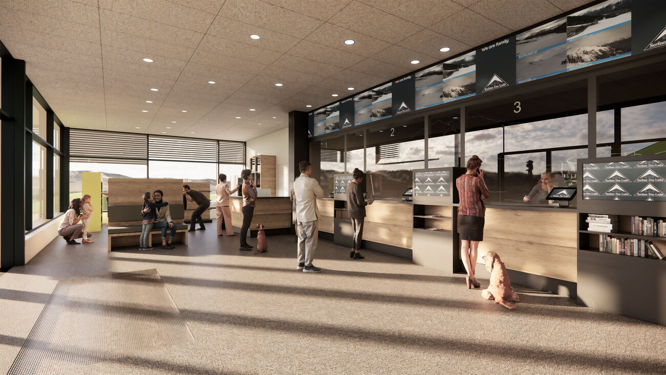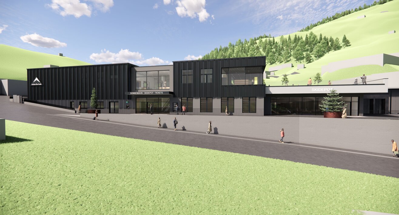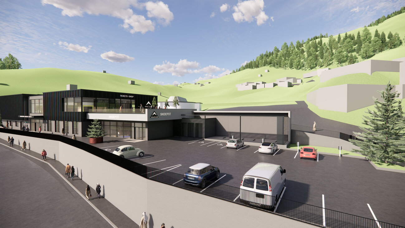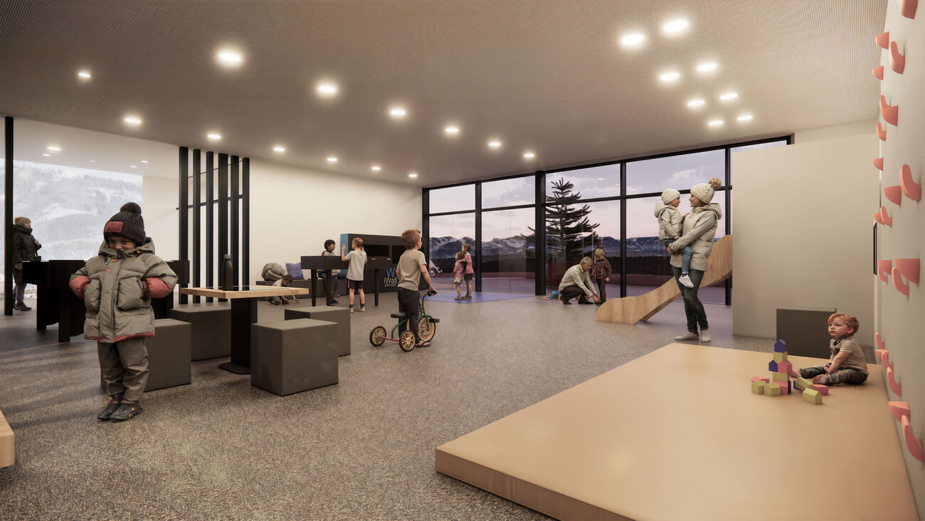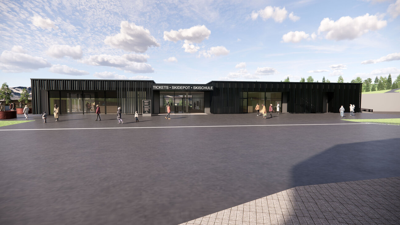 In dem modernen Neubau werden künftig ein hochwertiges Skidepot, das Skischulbüro, ein Kassa- und Shopbereich, ein großzügiger Indoor-Spielbereich sowie Mitarbeiterunterkünfte unter einem Dach vereint.