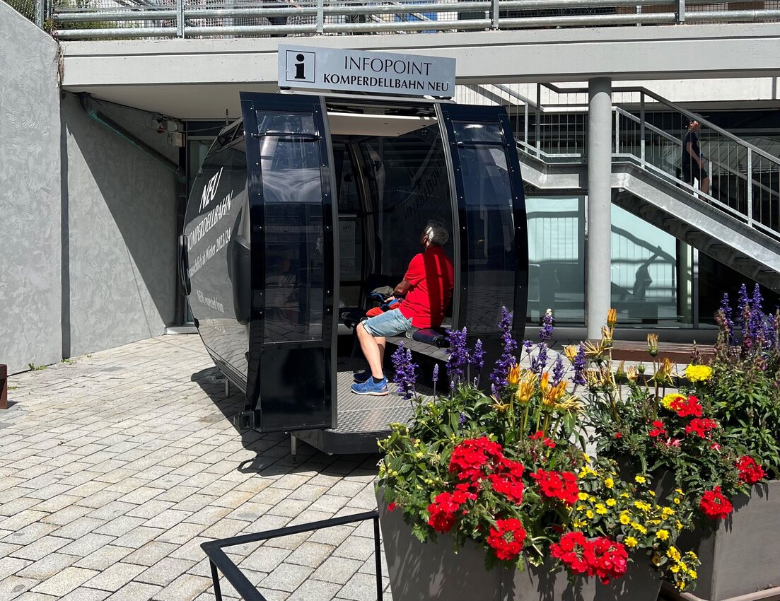 An der Talstation befindet sich schon seit geraumer Zeit eine Mustergondel, um eine bessere Vorstellung zu bekommen, wie die neuen Kabinen aussehen werden. Diese wurde nun zu einem Infopoint umfunktioniert, um die Gäste bestmöglich über die größte Investition in der Geschichte der Seilbahn Komperdell GmbH zu informieren.