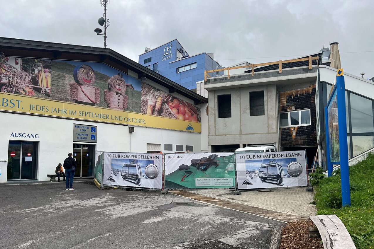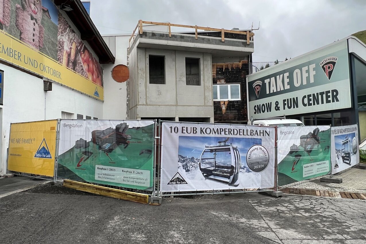 Auch an der Talstation sind erste Umbauarbeiten sichtbar. Hinter der Talstation entstand ein komplett neues Gebäude: die betriebseigene Schlosserei der Seilbahn Komperdell GmbH. Aktuell ist die Schlosserei im Untergeschoss der Komperdellbahn untergebracht. Hier entstehen im nächsten Jahr neue Räumlichkeiten für das großzügige Skidepot. Damit die Schlosserarbeiten im kommenden Sommer nicht unterbrochen werden müssen, wurde das neue Gebäude bereits jetzt schon errichtet. Ab Herbst kann die neue Schlosserei bezogen werden.
