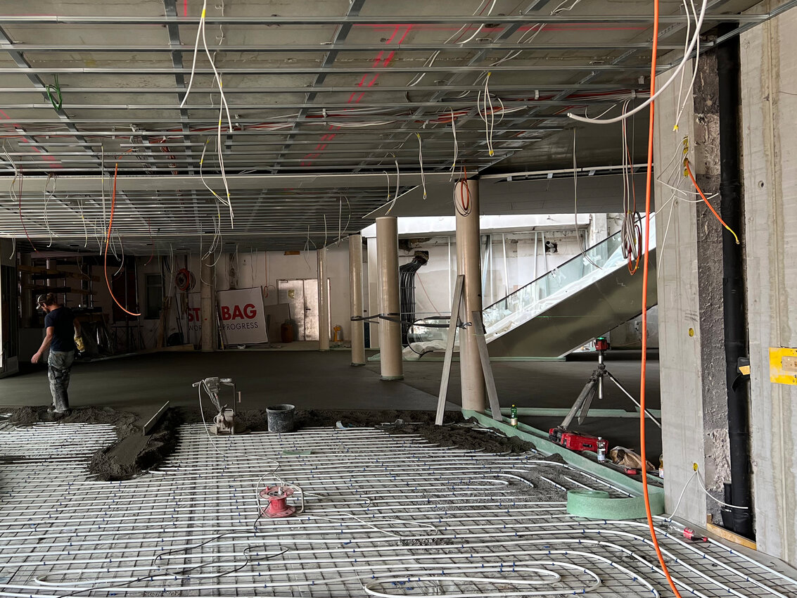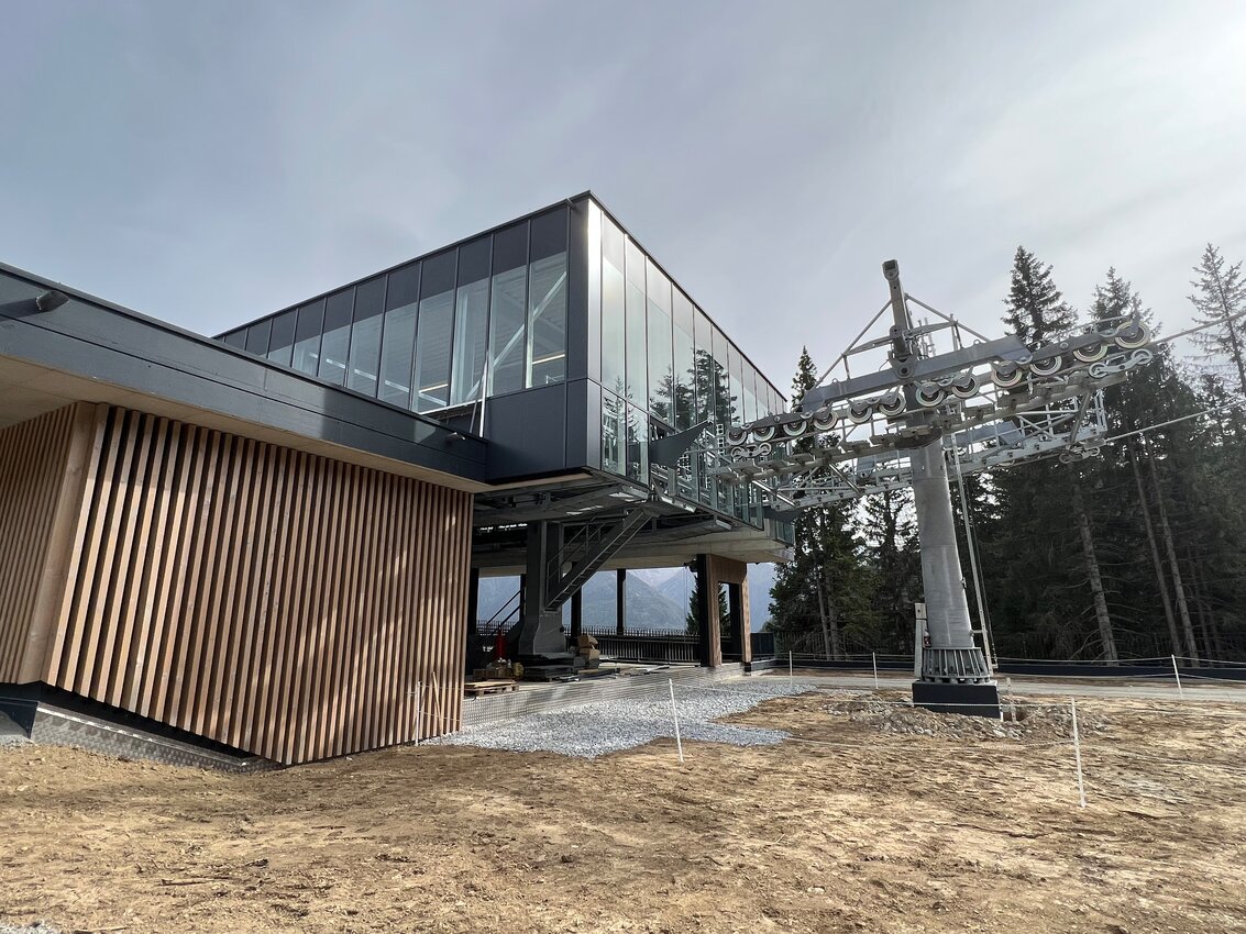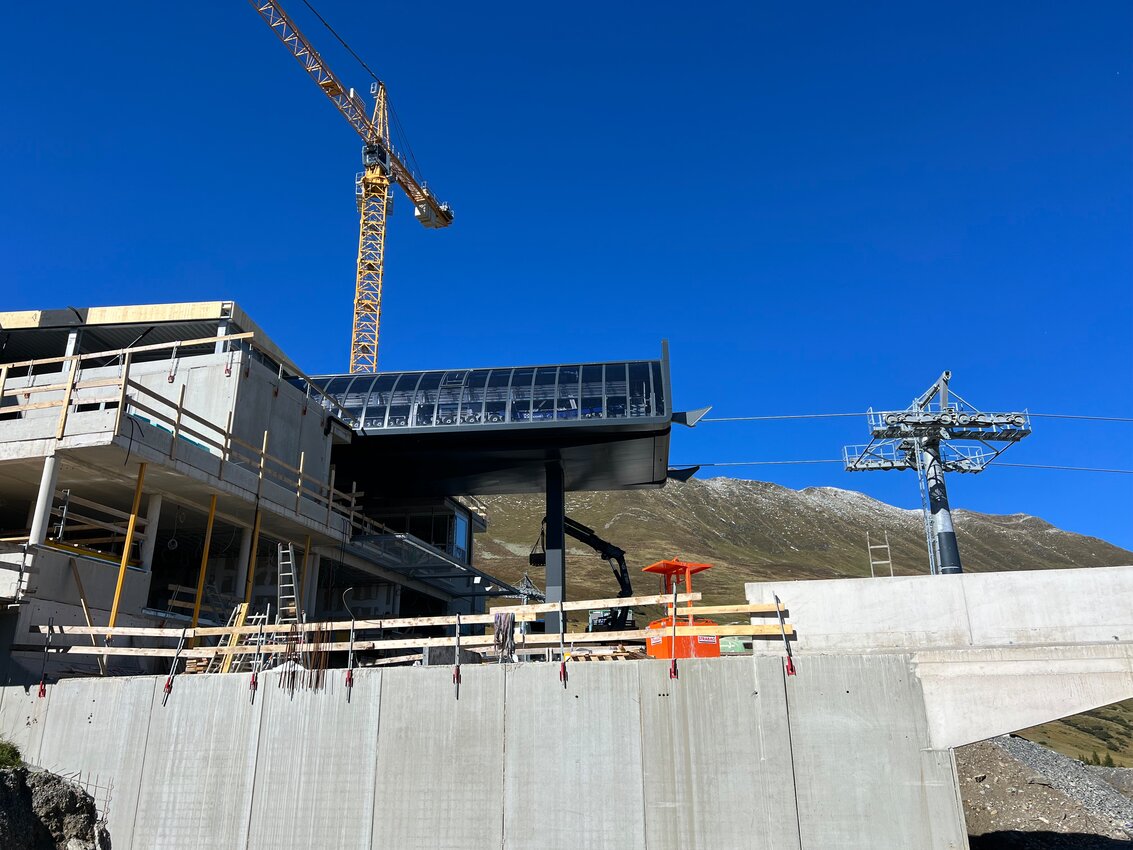 Zeitgleich werden an der Talstation die Verglasungen am Stationsgebäude eingesetzt. Diese sind – im Sinne erneuerbarer Energie - als Photovoltaik-Anlage ausgeführt. An der Fassade wird die Isolierung angebracht, damit der Zimmermann schon demnächst mit der Verkleidung (Holzlamellen) beginnen kann. Letzte Baumeisterarbeiten sind ebenfalls in Gange – wie zum Beispiel die Fertigstellung der Schneefanggruben (in den Zugangsbereichen zur Bahn) oder die Trägerkonstruktion (Bachüberbauung) als Verbindung zum Sunliner.