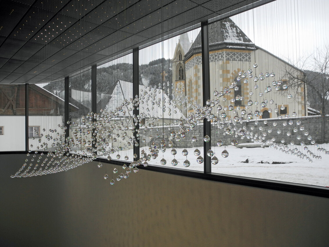 Die neue Station Kirche wird wirklich allen Erwartungen gerecht! Helle, freundliche Zugänge und Wartebereiche überzeugen genauso, wie die zusätzlichen Informationen über die Tourismusgeschichte, die im Bahnsteigbereich die Wartezeit verkürzen sollen. Mein persönliches Highlight sind allerdings die 1150 Kristalle, die den Luftraum im Inneren der Station ausfüllen. Elegant angeordnet stellen sie die Bergwelt rund um den Serfauser Hausberg – den Furgler – dar. Jeder kann sich hoffentlich vorstellen, wie diese Kristalle bei Sonneneinstrahlung in den schönsten Farben funkeln werden.
