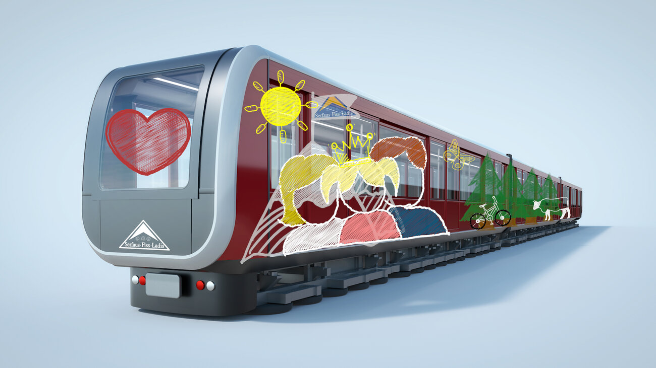 Und da kommt sie auch schon, die U-Bahn Serfaus. Da der Wagentausch erst im Jahr 2019 erfolgen wird, fährt derzeit noch die „alte“ Bahn ein. Aber – auch diese bekam ein komplett neues Facelift! Die Kids der Volksschule Serfaus konnten sich im Herbst kreativ verausgaben und der U-Bahn ein neues Aussehen verschaffen. Bunt gestaltet soll die Bahn somit den Gästen ein Lächeln ins Gesicht zaubern.