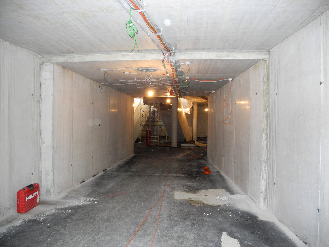 Ist man dann am Ende des Tunnels angelangt lassen die beiden Rolltreppen schon erahnen, was sich hier ab kommendem Winter abspielen wird! Wintersportler werden über die Rolltreppe oder den Aufzug (dieser ist momentan noch nicht ersichtlich) zur und von der mittleren Ebene transportiert, wo sich der Bahnsteig der U-Bahn Serfaus befindet.