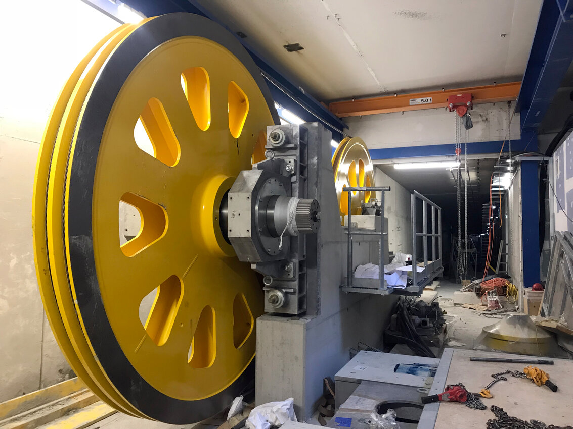 In den letzten Wochen wurde der komplette Antrieb, sowie der bestehende Maschinenraum in der Station Seilbahn demontiert. Die neuen Fundamente wurden betoniert, somit kann nun die Antriebseinheit montiert werden. Ebenfalls bereits montiert sind die neuen Elektroschränke, diese werden aktuell angeschlossen. Komplett fertig ist bereits die neue Trafostation.
