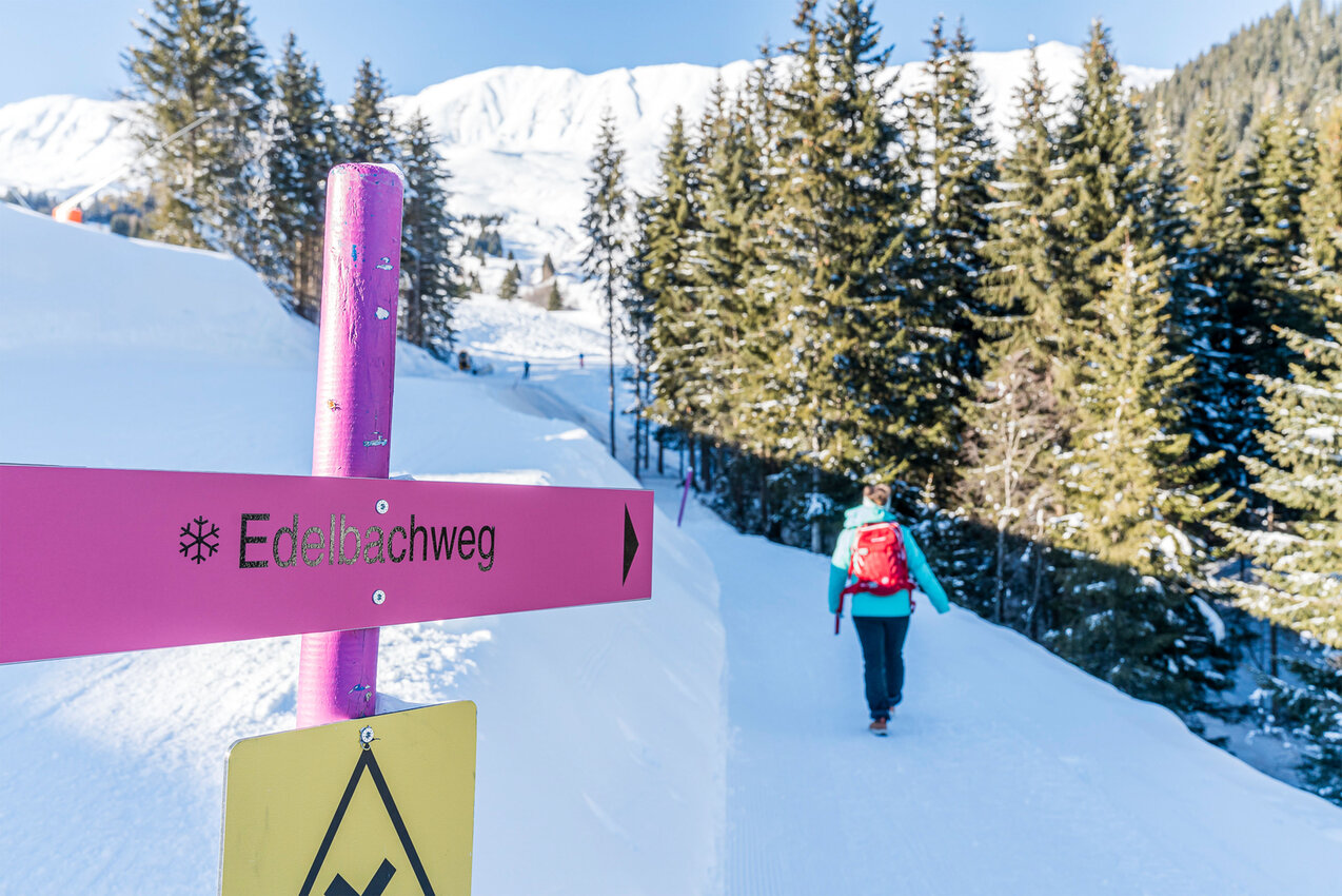 Unser Favorit? Der Panorama-Genussweg, der von der Möseralm oberhalb von Fiss via Sunliner bis zum Komperdell oberhalb von Serfaus führt. Die knapp fünf Kilometer lange Strecke hat uns mit ihrer abwechslungsreichen Wegführung und dem großartigen Bergpanorama begeistert. Dieses lässt sich von den am Wegrand platzierten, aussichtsreichen Sitzbänken besonders gut bewundern. Da kann es gut und gerne vorkommen, dass man die Zeit vergisst und etwas länger verweilt – alles kein Problem: Ein weiterer Pluspunkt des Winterwanderwegenetzes ist, dass es in regelmäßigen Abständen an einer Gondel vorbeiführt und somit auch ein unkompliziertes Abkürzen möglich ist.