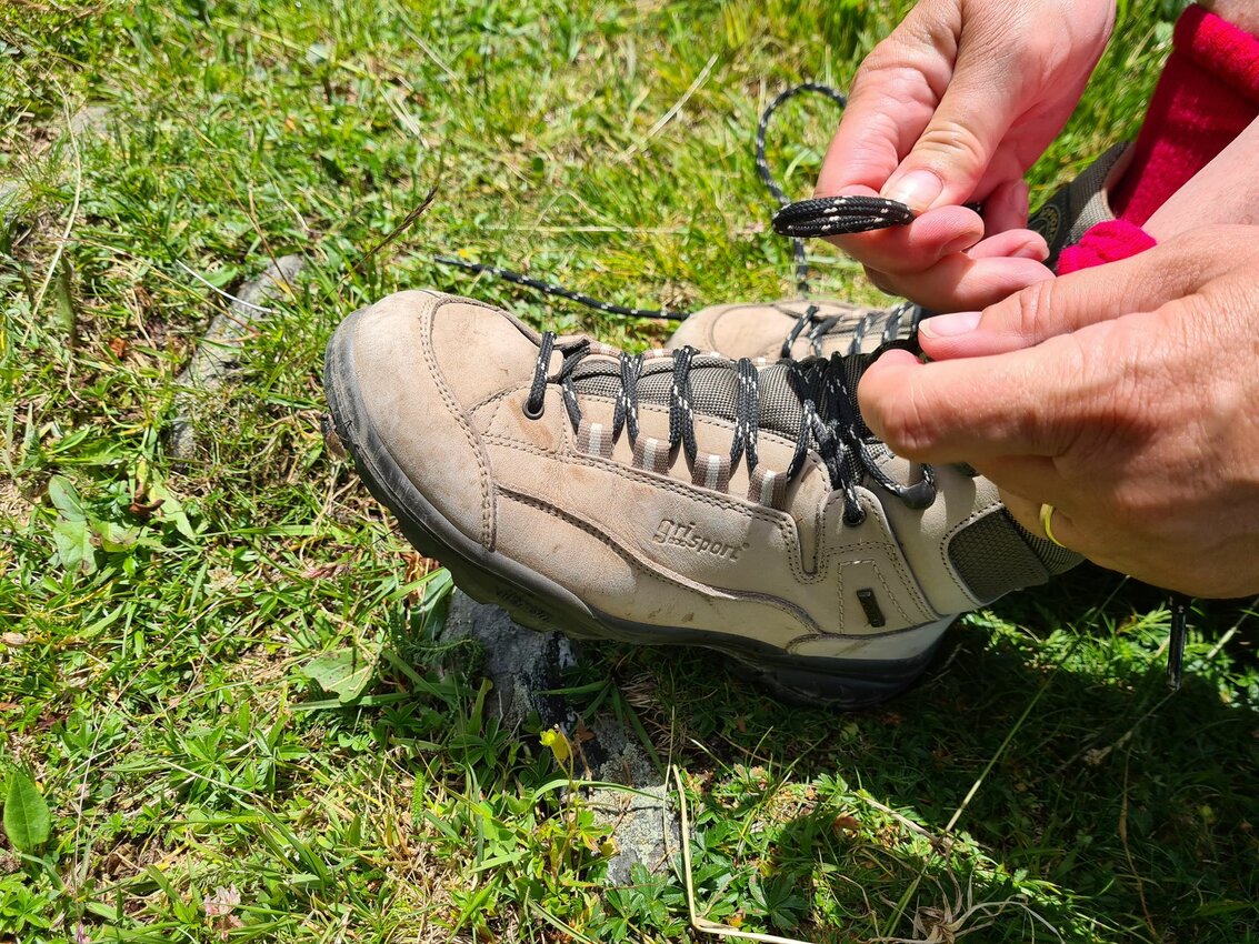 Nach der Hütteneinkehr liegt nun unser letztes Ziel vor uns: Cool down im Bergsee. In etwa 30 Minuten erreichen wir den idyllischen Urgsee. Schon allein der Anblick des Sees wirkt erfrischend. „Schuach ausziacha!“, ruft mein Bruder. Ob das Wasser eiskalt ist? Wir finden es in Kürze heraus. Vorsichtig klettern wir vom Ufer in den See und beginnen unsere Kneippkur. Und ja: Es IST kalt, aber so richtig. Unsere müden Wanderfüße bedanken sich für die wohltuende Abkühlung. Auch wenn ich mich schon ein wenig überwinden muss.