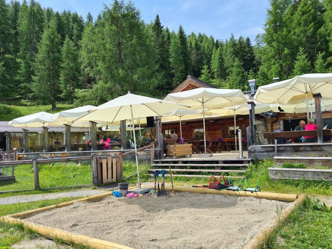 Die Schöngampalm ist eine kleine aber feine Hütte auf der Fisser Nordseite. Hier kannst du mehr als nur lecker essen und trinken. Ein Kinderspielplatz inklusive "Hupfstadl", Sandkasten, Schubkarren & Co laden zum Austoben ein. Wer's entspannt angehen will, sucht sich ein feines Plätzchen auf den zahlreichen Liegen. Sogar einen Grillstelle kann hier exklusive gebucht werden. Auf der Schöngampalm geht es also auch heiß her, wenn man will. Direkt neben dem Restaurant kannst du außerdem ein Bike ausleihen und talwärts nach Fiss fahren. Neben Zweibeinern und Zweirädern gibt es auch einige Tiere zu entdecken: Hühner, Hasen, Ziegen, Schweine und Minipferde finden bei der Schöngampalm ihren Platz.