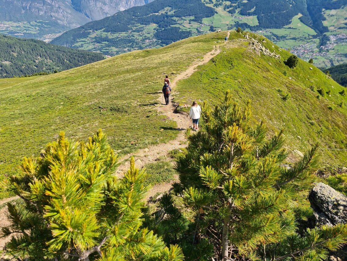Besonders gut gefällt mir der Zirbenwald weiter unten. Immer unser Begleiter: Der Bergwind. Je mehr Meter wir mit unseren Wanderschuhen nach unten klettern, desto milder weht der Wind und die Temperaturen klettern in die Höhe. Die Jacke wandert sogleich wieder in den Rucksack.