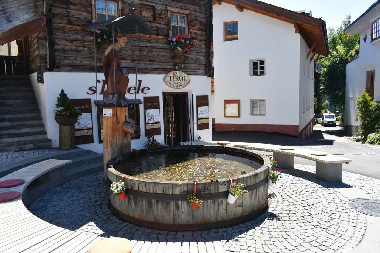 Unsere Kellnerin Vicky erklärt: „Das Besondere an diesem Tiroler Sauerbrunn ist, dass das Wasser einen hohen Anteil an gesunden Mineralstoffen wie Magnesium, Calcium oder Sulfat hat, die sich positiv auf unseren Körper auswirken. Er kommt vom Nachbardorf Ladis“. Bei uns wirkt das Wasser schon mal: Wir fühlen uns gestärkt und vor allem erfrischt.