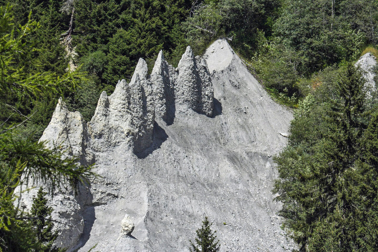 Am Westende von Serfaus, knapp oberhalb der Talstation der Komperdellbahn, findet man, meiner Meinung nach, ein sehr faszinierendes und gleichsam seltenes Naturwunder, das über Jahrtausende entstanden ist. Und zwar die Erdpyramiden. Diese bestehen aus Säulen und Kegeln, die durch Moränenschutt entstanden sind. Moränen sind Ansammlungen von Gesteinsschutt, die von Gletschern vor sich hergeschoben und mitgeführt wurden. 1996 wurden die Serfauser Erdpyramiden zum Naturdenkmal ernannt.