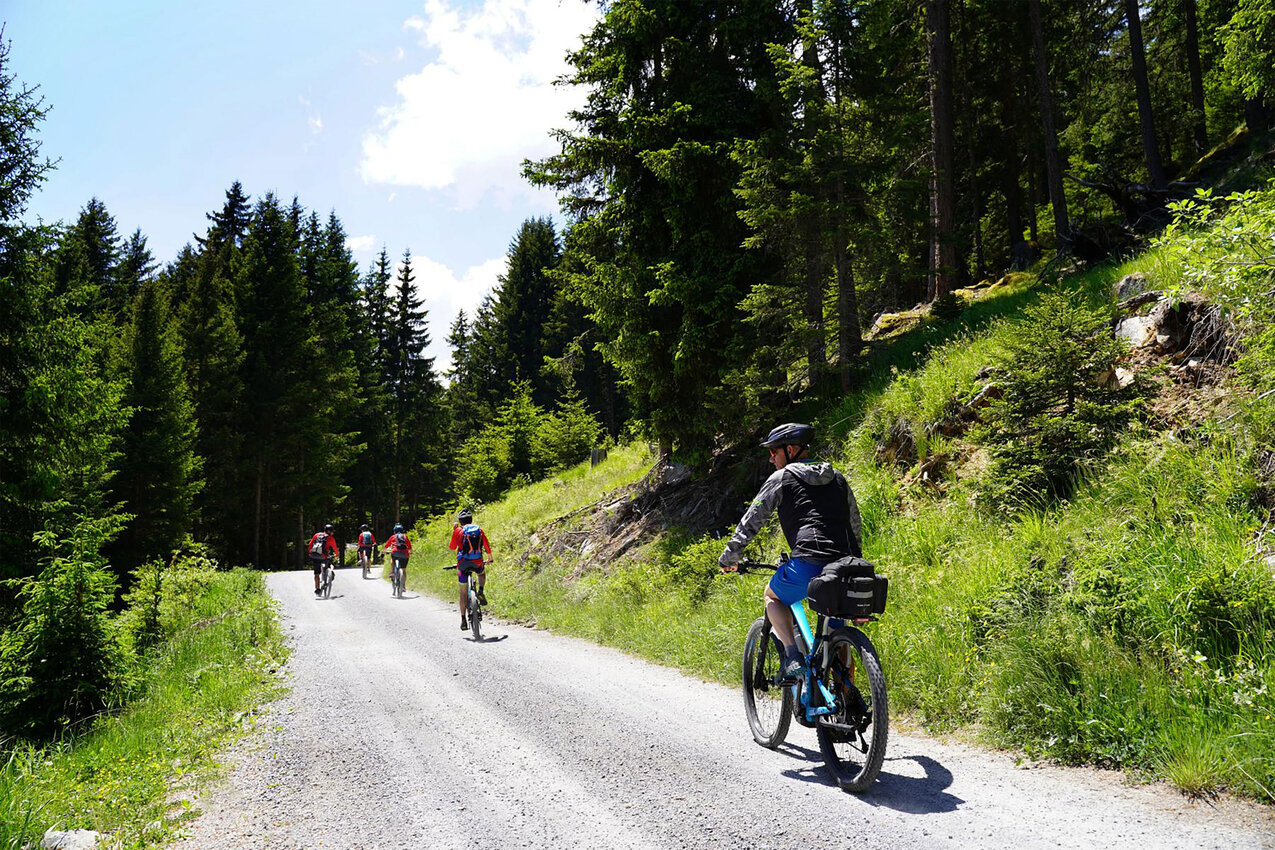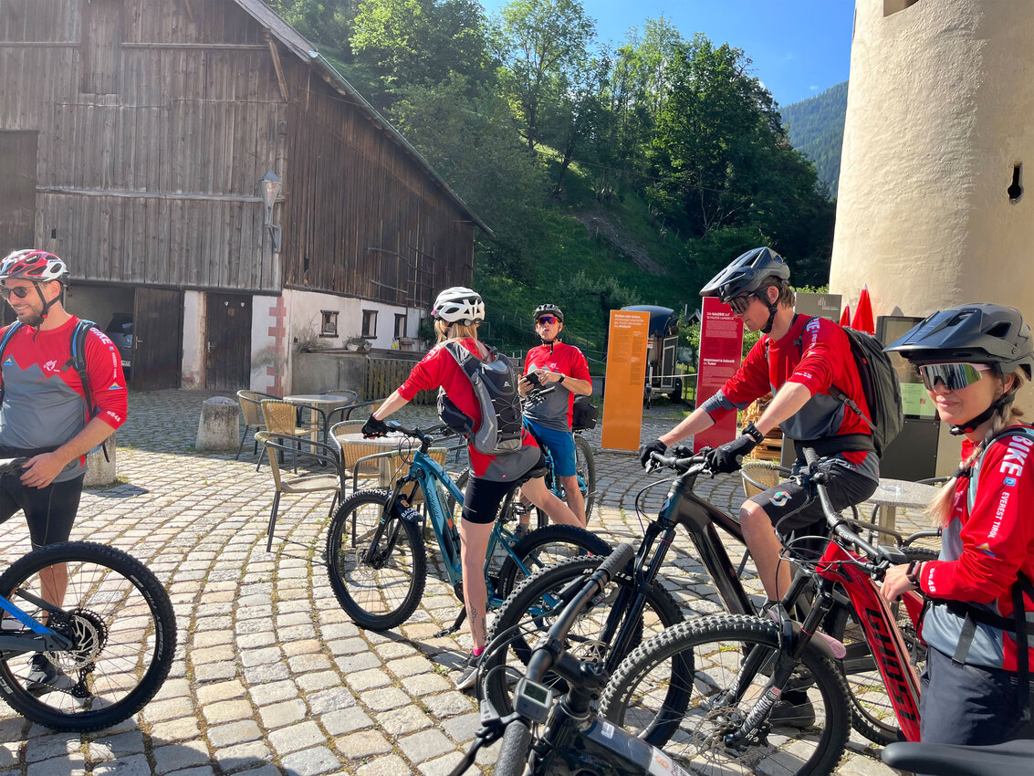 Die Tour startete beim Schloss Landeck. Mit einer geballten Ladung Motivation schwangen wir uns auf unsere elektrischen Fahrräder und traten kräftig in die Pedale. Die Vorfreude auf das Abenteuer lag förmlich in der Luft, während wir uns energiegeladen auf den Weg machten.