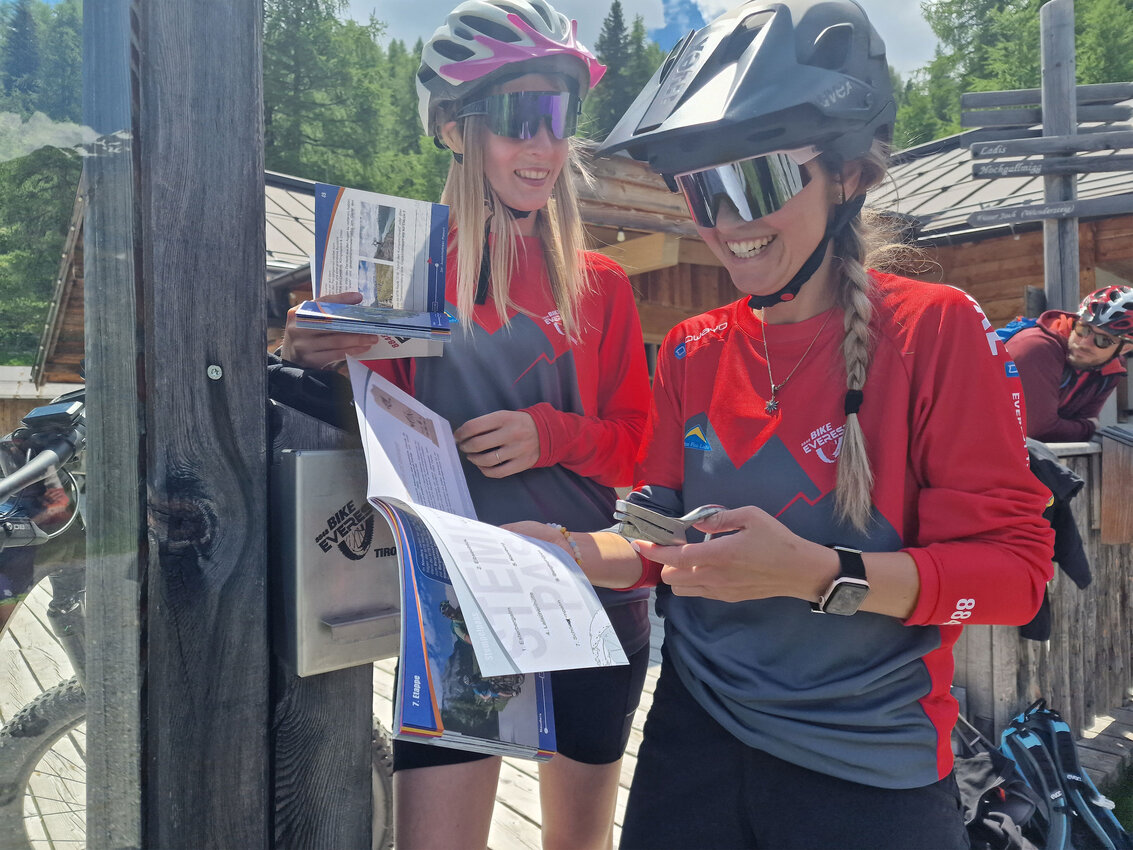 Wir, das Team vom Tourismusverband SFL, haben uns mit großer Begeisterung dazu entschlossen, eine der sieben Strecken von Bike Everest Tirol zu erkunden und davon zu berichten. Unsere Wahl fiel auf die aufregende 5. Etappe, die uns auf die Spuren der alten Römer führte. Taucht ein in unsere spannende Reise und entdeckt mit uns traumhafte Ausblicke und Plätze, an denen man eine entspannte Atempause einlegen kann, um die Schönheit der Umgebung in vollen Zügen zu genießen. Zu Beginn der Tour erhielt jeder von uns ein persönliches Tourbook inklusive Stempelpass, in dem alle Touren beschrieben sind und wir die einzelnen Ziele abstempeln können.