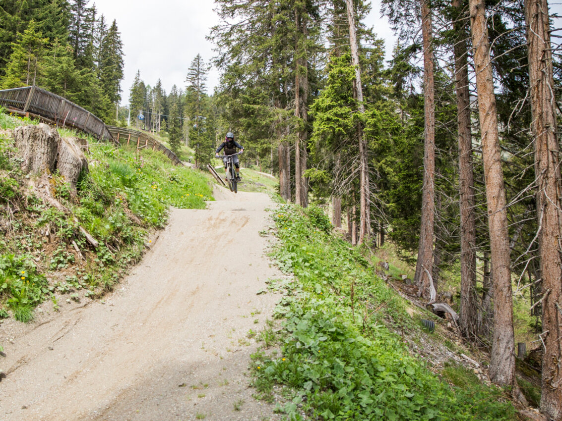 Wer sich den Trail über 400 Höhenmeter hinab traut, kann in Serfaus-Fiss-Ladis zwischen drei Schwierigkeitsgraden wählen: schwarz (schwierig), rot (mittel), blau (einfach). Die steilen Strecken kosten Überwindung, doch der persönliche Kick und ein rasendes Glücksgefühl sind garantiert. Bei dem Sport „kann ich abschalten, da geht es nur um mich. Dann bin ich wie in einer anderen Welt, wie in Trance. Und ich weiß, wenn ich etwas falsch mache, dann tut es weh.“ Ein bisschen hat das Biken das Leben der 25-Jährigen schon verändert. „Ich bin ausgelassener und glücklicher. Das ist wie eine Art Therapie für mich.“