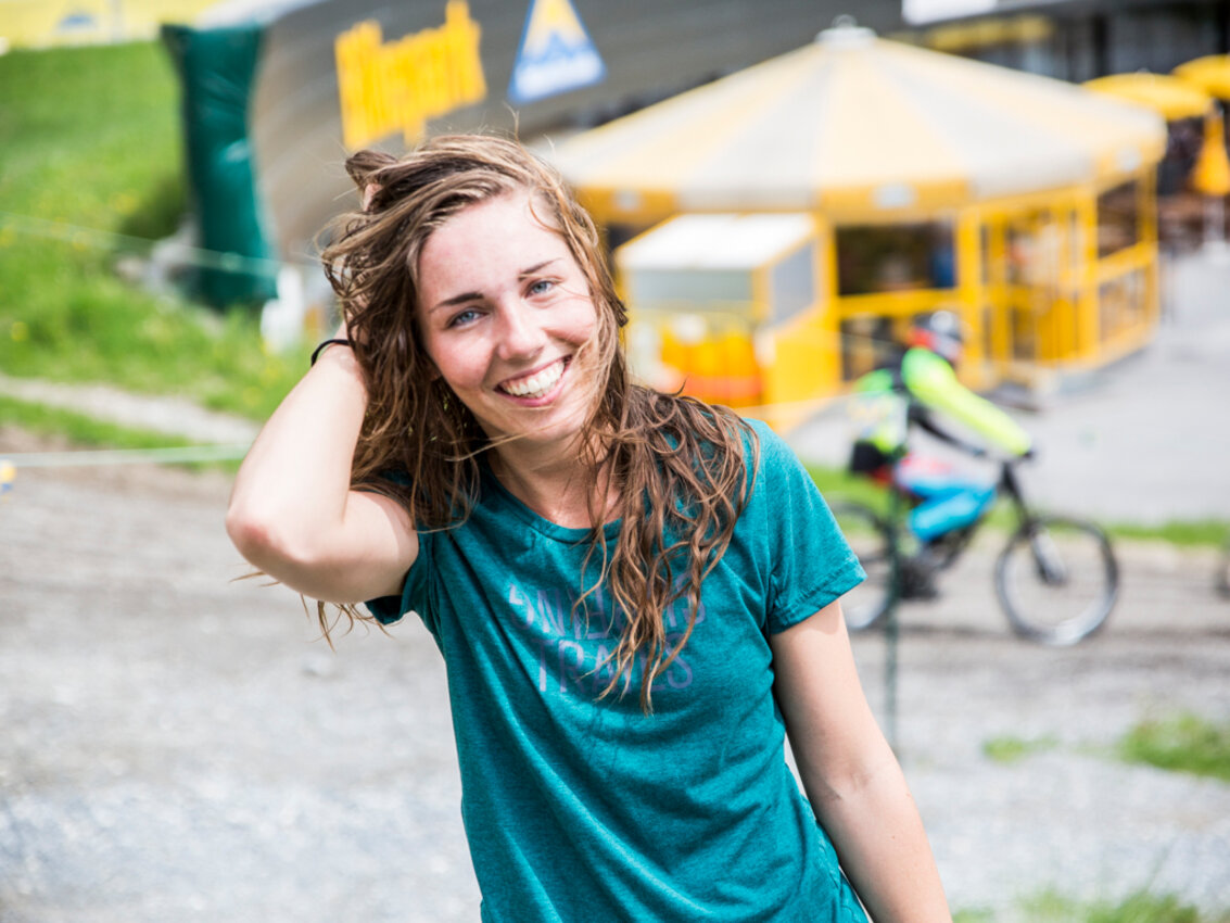 Ihre Gruppen sind bunt durchgemischt. „Ich unterrichte viele Kinder, viele Erwachsene – einige haben schon Ahnung, andere kommen vom Mountainbiken und haben wenig Downhillerfahrung. Im Bikepark gibt es einen Schnupperkurs, der dauert 2,5 Stunden.“ Es ist ein Rundum-Package mit Guide und Ausrüstung. „Da ist alles dabei.“ Momentan kommen tatsächlich „noch mehr Jungs, aber Mädels ziehen langsam nach“. Das bestätigen auch die Teilnehmerzahlen ihrer Sommerkurse, die speziell für einheimische Kinder zwischen acht und dreizehn Jahren angeboten werden: „In den Sommerferien haben wir jeden Mittwoch Kindertraining mit den ‚Local Kids‘. Das macht so viel Spaß. Die Kinder fangen bei null an und am Ende der Saison fahren die Kleinen die schwarze Strecke runter, wie die Erwachsenen. Da sind dann auch viele Mädels dabei!“
