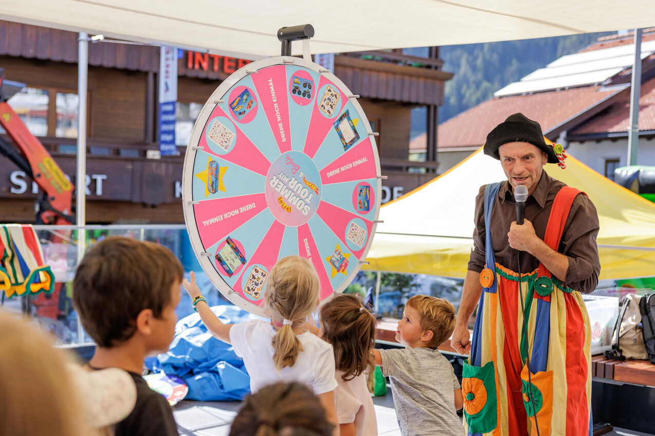Neben all diesen Aktivitäten gab es auf der Puint Bühne noch ein großartiges Unterhaltungsprogramm mit Clown Luigi. Dieser tanzte fröhlich mit den Kindern umher. Beim Glücksrad oder beim Schuhmemory konnten die Kids sogar mit etwas Geschick tolle Preise gewinnen.