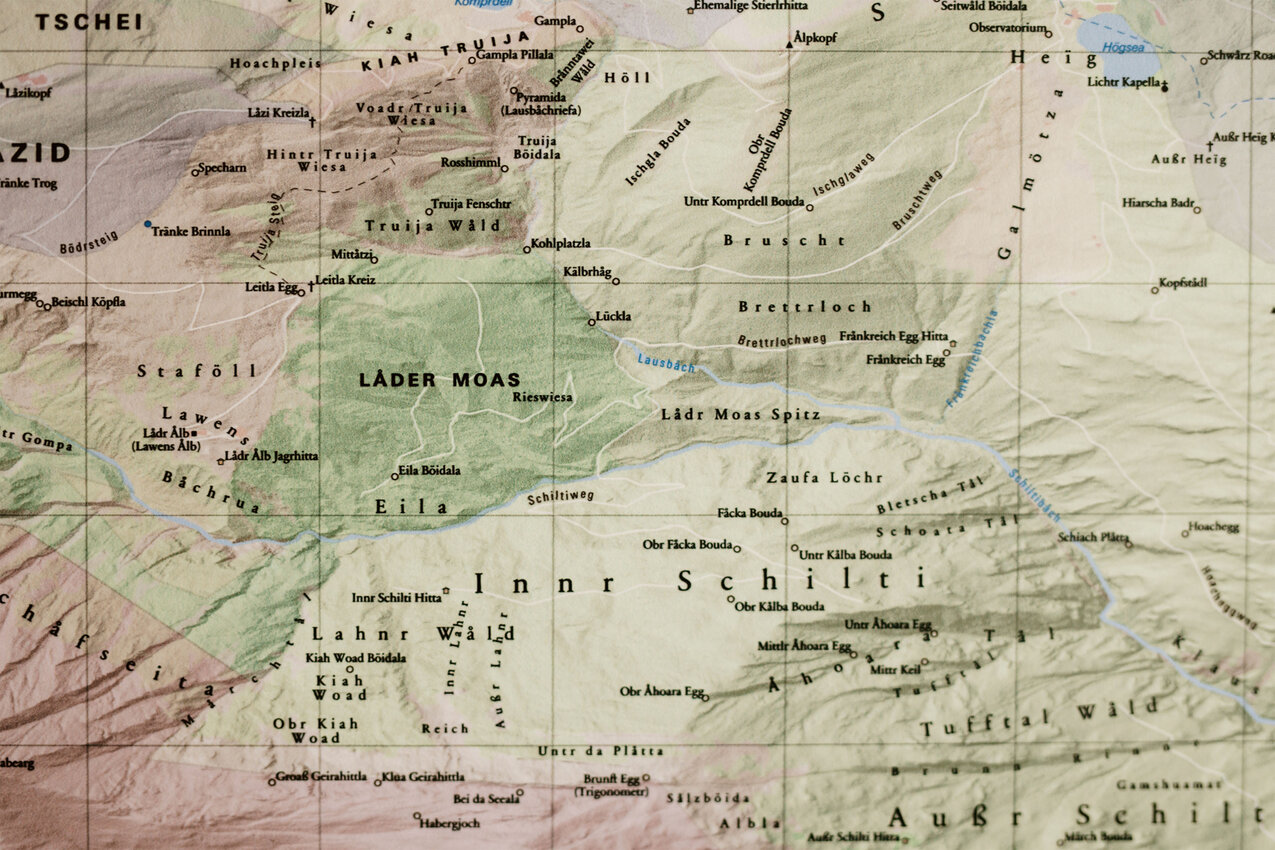 Während Georg die Recherche übernahm und mit zahlreichen Grundstückseigentümern, Bauern, Hirten und älteren Serfausern über die Flurnamen sprach, war es Julians Aufgabe, die Karte zu digitalisieren. Nicht immer waren sich die Befragten dabei ganz einig, wenn es um die korrekte Bezeichnung ging: Dann wurden bestehende Karten verglichen. „Wurden zwei Namen genannt, die auf keiner Karte bisher aufschienen, dann haben wir mitunter beide Namen in unser Dokument aufgenommen“, sagt Julian. Auch bei den Schreibweisen der Orte musste ein Kompromiss gefunden werden: „Würde man es ganz korrekt machen wollen, müsste man für die Dialektbegriffe ein eigens entwickeltes Alphabet verwenden. Das ist aber für Laien nur schwer zu entziffern. Deshalb haben wir uns für einen Kompromiss aus Genauigkeit und Einfachheit entschieden und die Flurnamen möglichst wortgetreu aufgeschrieben“, erklärt Julian.