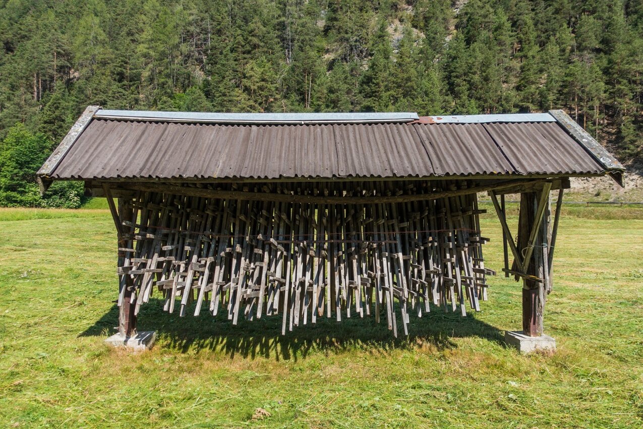 Frühheu machen läuft immer nach demselben Schema ab: „Zuerst mähen, dann kreiseln – damit das Heu trocknet – danach zusammentun und einarbeiten“, sagt Emil. Hinter dem Mähen steckt eine lange Tradition, deren Arbeitsschritte heute teils noch genauso gemacht werden, wie früher. Mit der Ausnahme, dass die Arbeitsgeräte zum Mähen mit der Zeit gehen und sich den modernen Techniken anpassen. „Zum Mähen verwendete der Schnitter oder Mähder ursprünglich eine Sichel oder die Sichte. Erst im Mittelalter kam die viel effektivere Sense auf. Dabei musste die Klinge regelmäßig neu geschärft, also ‚gewetzt‘ werden. Das machte der Schnitter mit einen Wetzstein, den er immer bei sich trug.“ Heute geht alles ein bisschen einfacher. „Motorbetriebene Mähgeräte“ und der technische Fortschritt erleichtern die Arbeit – zumindest im Tal.