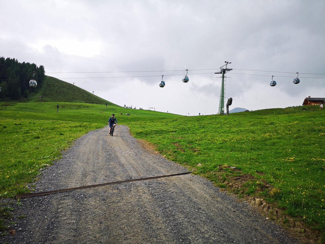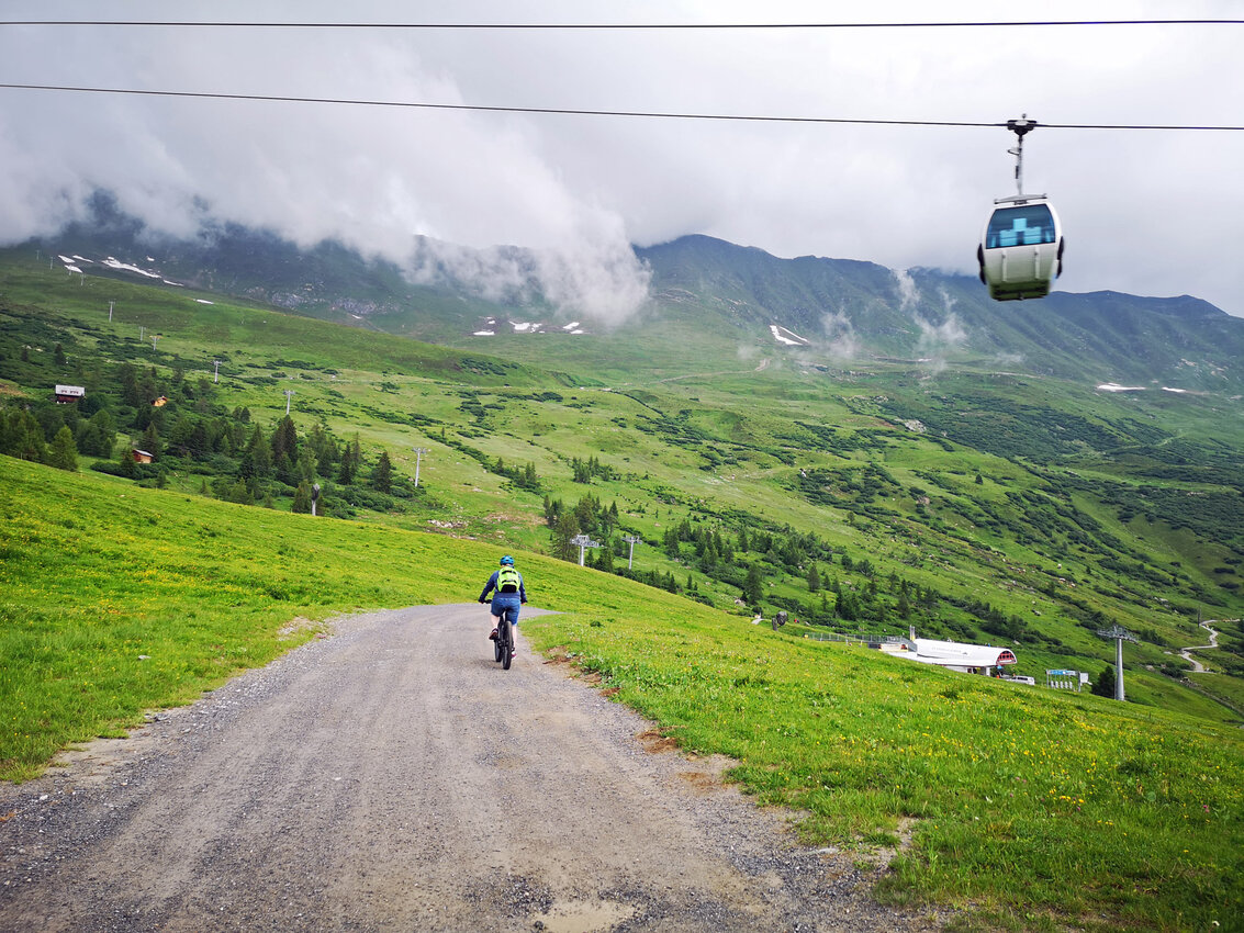 Je nach Gondelart wird das Bike in der Kabine oder außen an einer Spezialaufhängung im Skiköcher transportiert. Besonders E-Bikes, die doch über ein paar Kilos mehr verfügen, sind für die Bergbahnmitarbeiter ein wahrer Kraftakt. Wird der Drahtesel in die Gondel geschoben, werden die Sitzbänke nach oben geklappt. Die freundlichen Bergbahnmitarbeiter stehen stets helfend zur Seite.