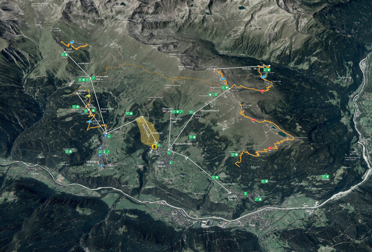 • Alle Pedalritter, die in Besitz einer Biketransport-Karte für die Schönjochbahn sind, können ihr Bike davor oder danach kostenlos mit der Sonnenbahn von Ladis nach Fiss befördern.