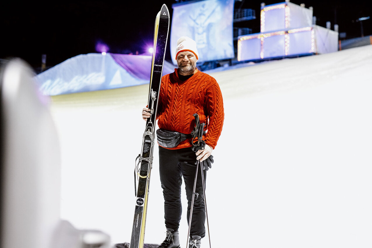 Es ist kurz nach acht Uhr abends, in wenigen Minuten fällt der Startschuss zum wöchentlichen Nightflow, der Skishow in Fiss. Trotzdem bleibt Daniel Frizzi ganz entspannt. „Mittlerweile sind wir ein eingespieltes Team“, lacht er. „Vor der allerersten Show in dieser Saison war das ganz anders“, gibt er zu. „Da war ich – und eigentlich wir alle – sehr nervös. Die allererste Probe im Dezember war grauenvoll, nichts hat geklappt, die erste Generalprobe lief dann super. Da haben wir die finale, zweite Generalprobe kurzerhand abgesagt, um unser Glück nicht überzustrapazieren.“ Der 28-Jährige behält bei der Skishow den Überblick – beruflich und mit voller Begeisterung. „Der Nightflow wird von der Skischule Fiss-Ladis und den Bergbahnen Fiss-Ladis gemeinsam organisiert und veranstaltet. Ich bin seitens der Bergbahnen verantwortlich“, sagt er. Jede Saison hat die Skishow ein neues Motto. „Rock the Snow“ war es im Winter 2022/2023, für diese Saison und die neue Show mit dem Titel „The Eagle Returns“ wurde eifrig geplant. „Wir besprechen eigentlich schon im Winter während der Shows, was wir nächstes Jahr zeigen möchten“, sagt Daniel.