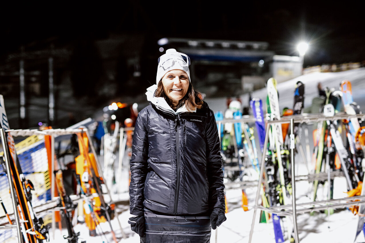 Der kreative Kopf hinter dem Nightflow ist Eva Stark, die Leiterin des Kinder- und Anfängerbereichs der Skischule Fiss-Ladis. Sie war lange Zeit selbst im Demo-Team und hat von Beginn an bei der Entwicklung der Show mitgearbeitet. „Irgendwann habe ich die Leitung dann übernommen“, sagt sie. Für jede Show werden von Eva und dem Kreativteam – zu dem auch Daniel Frizzi gehört – unzählige Stunden Arbeit investiert. „Der Nightflow ist von der Planung her sehr umfangreich und es dauert lange, die Idee in ein fertiges Regiebuch zu verwandeln. Viele Leute sind gleichzeitig am Hang, die müssen koordiniert werden, dazu muss die Musik abgestimmt werden, die Drohnen passend fliegen, das Feuerwerk zeitlich perfekt ausgelöst werden“, erzählt sie. Eva ist bei jeder Show selbst vor Ort und gibt die Kommandos. „Mir macht das riesigen Spaß“, sagt sie – und ist schon wieder weg, es gibt viel zu tun an diesem Abend.