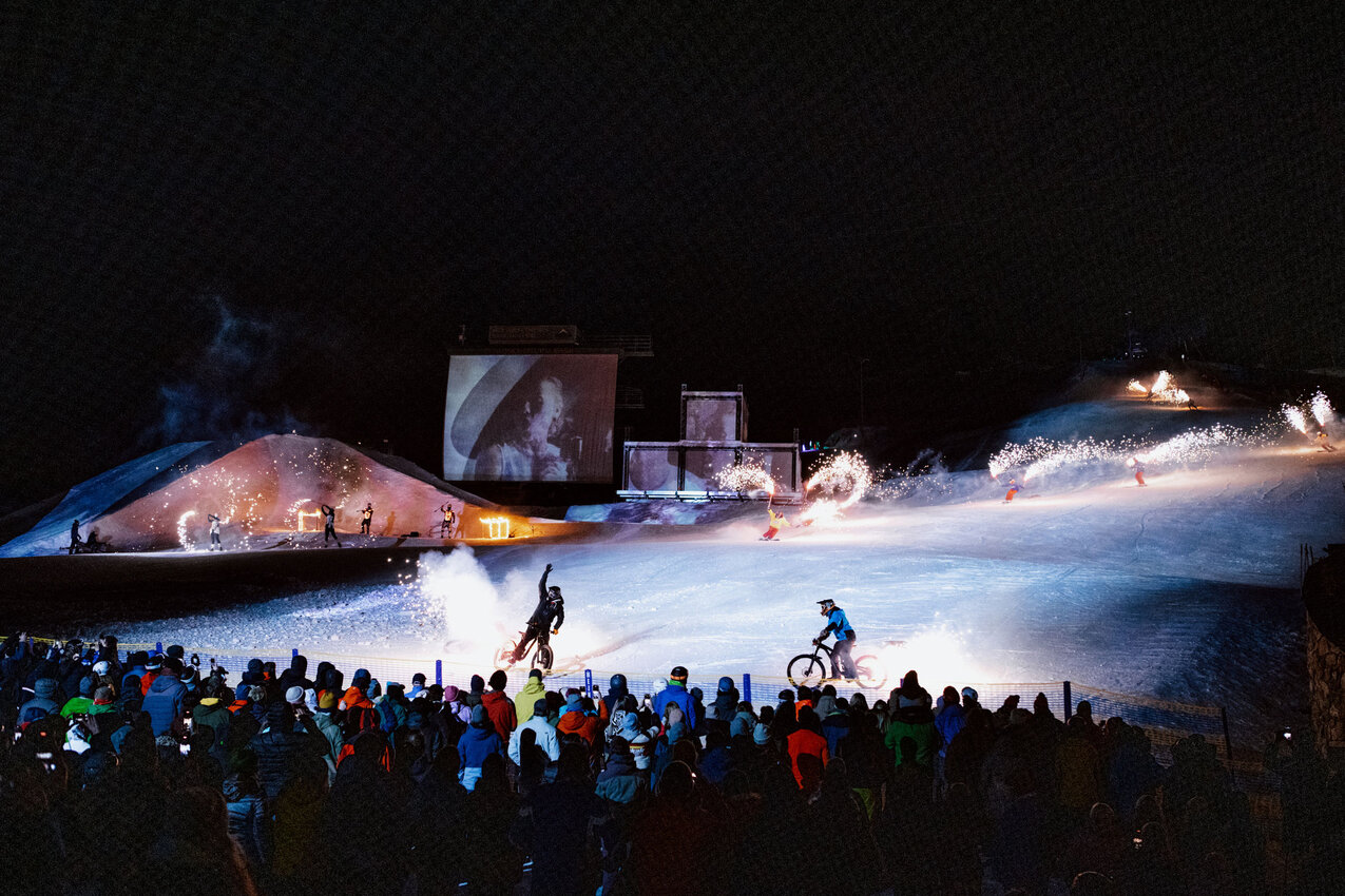 Bevor die Show perfekt sitzt und Ende Dezember mit dem Auftaktevent die neue Nightflow-Saison eingeläutet werden kann, muss natürlich viel geübt werden: Die Teams – von den Skilehrern bis zu den Skiglidern oder Mountainbikern - treffen sich einzeln, um ihre Choreografien zu trainieren, dann gibt es drei gemeinsame Probedurchgänge im Dezember. Dazu kommt die Arbeit des Technikteams, die sich schon ab Herbst und vor den ersten Shows dann fast täglich treffen, um Licht, Musik, Feuerwerk und Drohneneinsätze perfekt abzustimmen. „Kurz vor der ersten Show ist mir dann noch eingefallen, dass ich gerne eine Kiss Cam wie bei Sportevents hätte“, lacht Daniel. „Da habe ich mir selber ein bisschen Stress gemacht, aber dieses Extra kommt gut an.“ Die positive Resonanz aus dem Publikum ist es auch, was Daniel Frizzi und die Nightflow-Mannschaft jede Woche aufs Neue motiviert. „Ich stehe bei jeder Show im Publikum und man merkt einfach, dass die Zuschauer eine Riesen-Gaudi haben“, so Daniel.