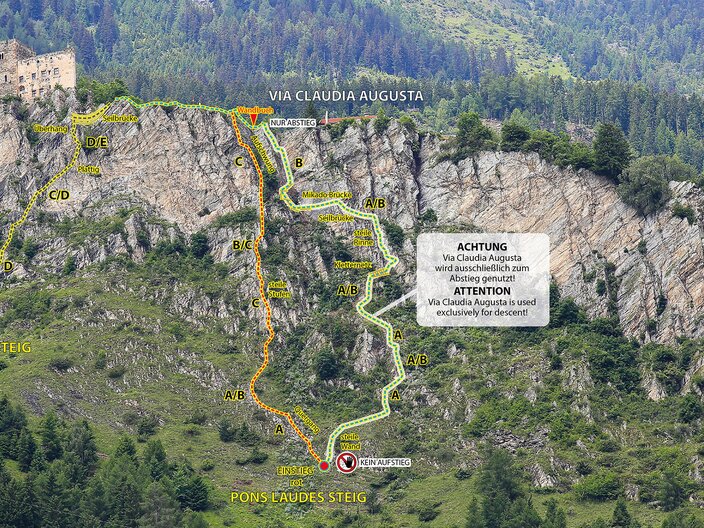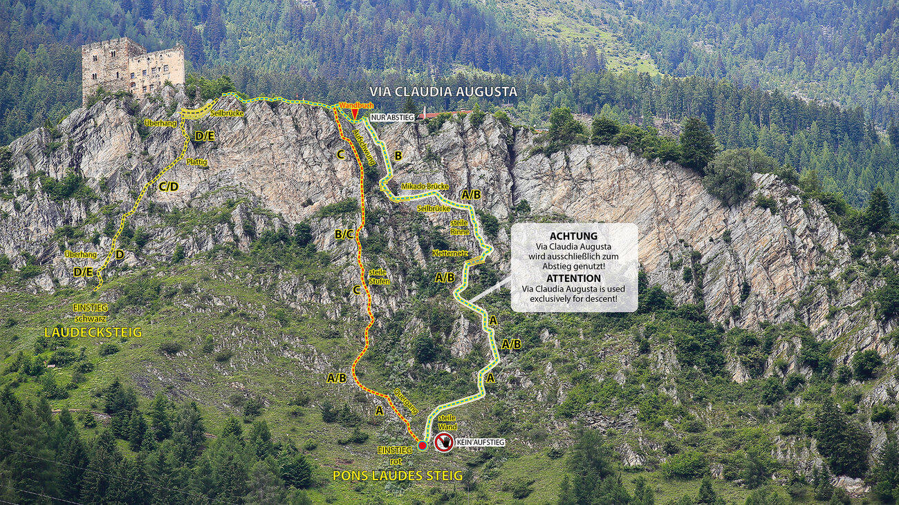 Bitte beachten Sie, dass die Klettersteige in Ladis nur von Mitte Mai bis Ende Oktober geöffnet sind.