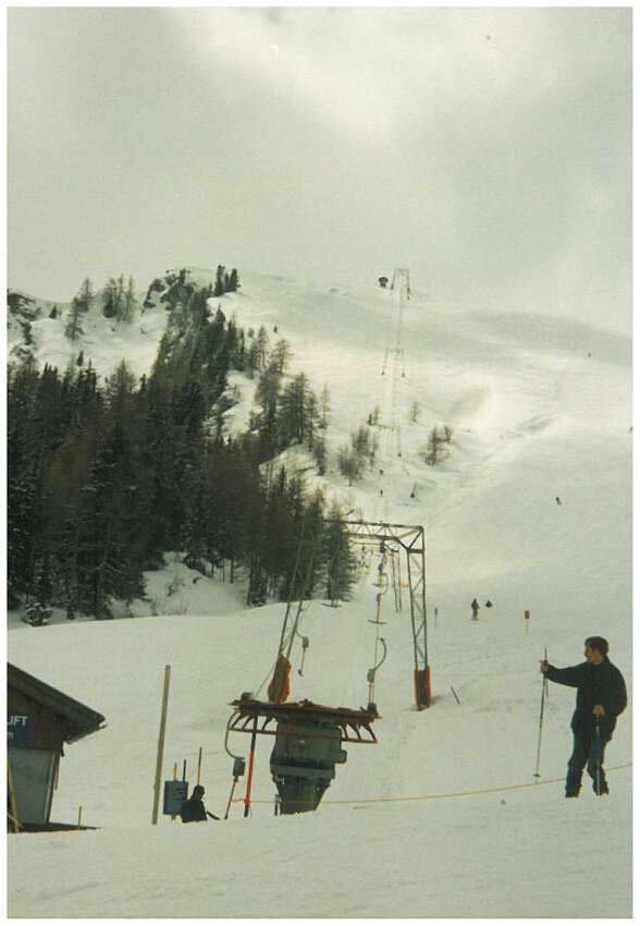Ganz schön abenteuerlich muss so eine Fahrt mit einem Einsersessellift gewesen sein. Besonders, wenn der schützende Bügel offen bleibt. Eine Zeitzeugin erinnert sich lächelnd: