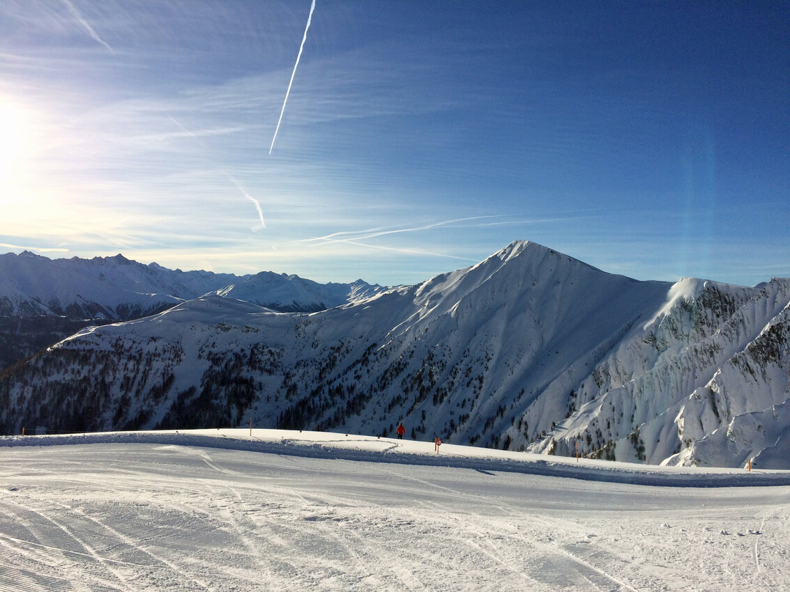 Nach etwa 20 Minuten Fahrt erreichten wir dann die Skihütte Masner bzw. das angrenzende Monte Mare Restaurant. Der Magen knurrte. Ich machte es mir auf der Sonnenterasse der Skihütte Masner bequem. In dieses schöne Plätzchen Erde zu gelangen, ohne dabei die Ski anschnallen zu müssen, ist wirklich ein Luxus. Besonders für Urlauber die nicht mehr allzu sicher auf den Brettern stehen, ist dieses Angebot optimal! So können auch Nicht-Skifahrer in den Genuss des Masnergebietes kommen.