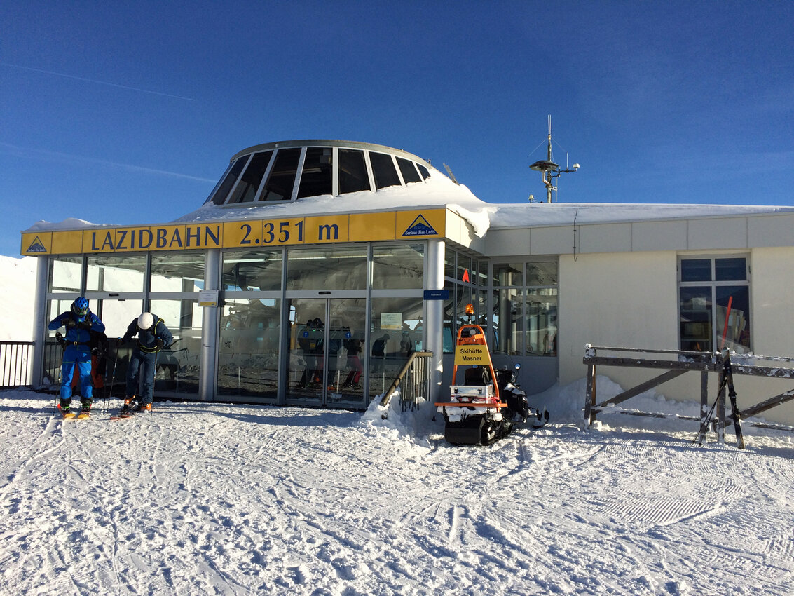 Nachdem wir einige Höhenmeter machten, ging es wieder talwärts zur Pezidbahn. Elmar parkte seinen Bully ordnungsgemäß und wir stiegen in die Gondelbahn ein. Diese beförderte uns hinauf zur Aussichtsplattform P1 auf 2.770 m. Eine grandiose Fernsicht erwartete uns.