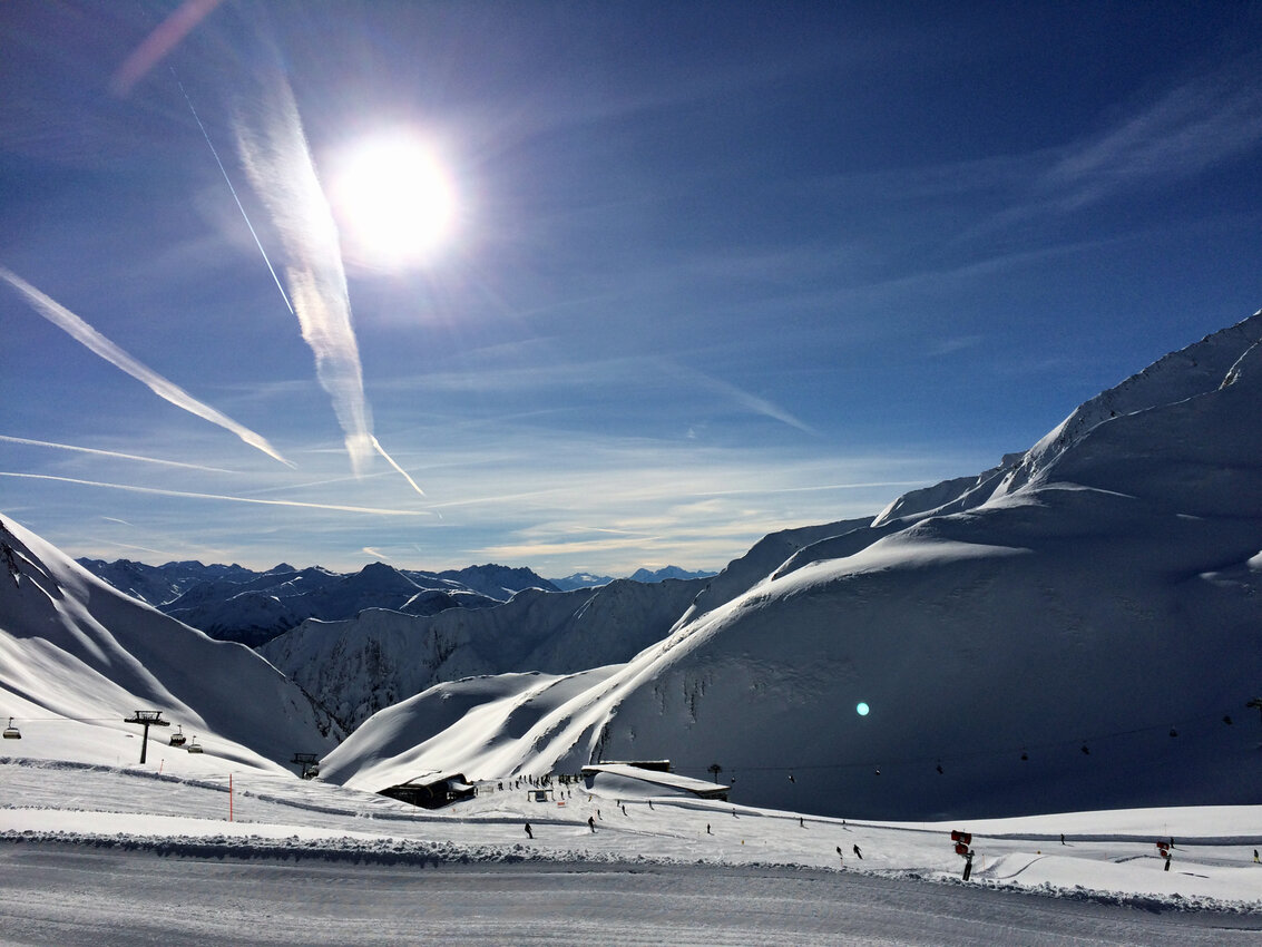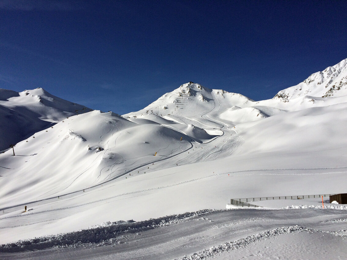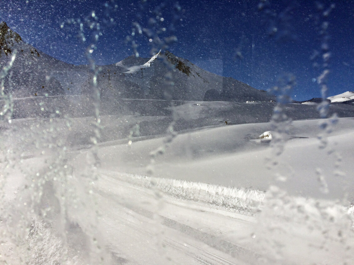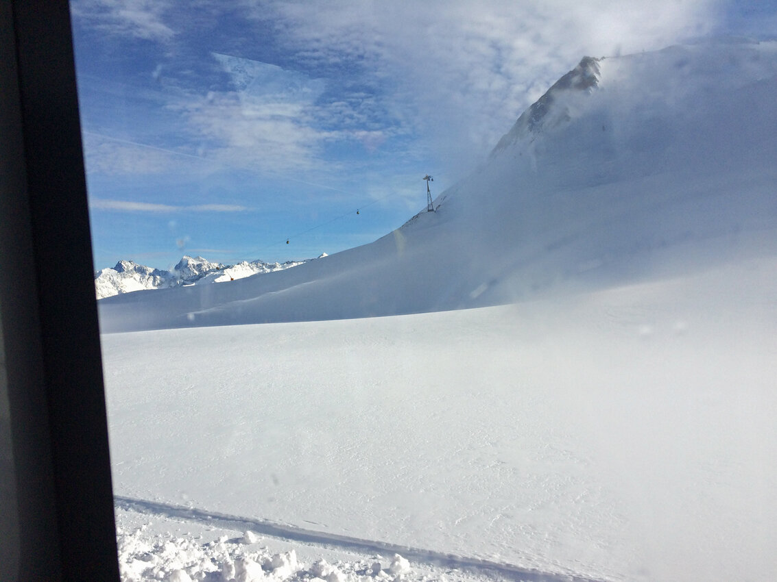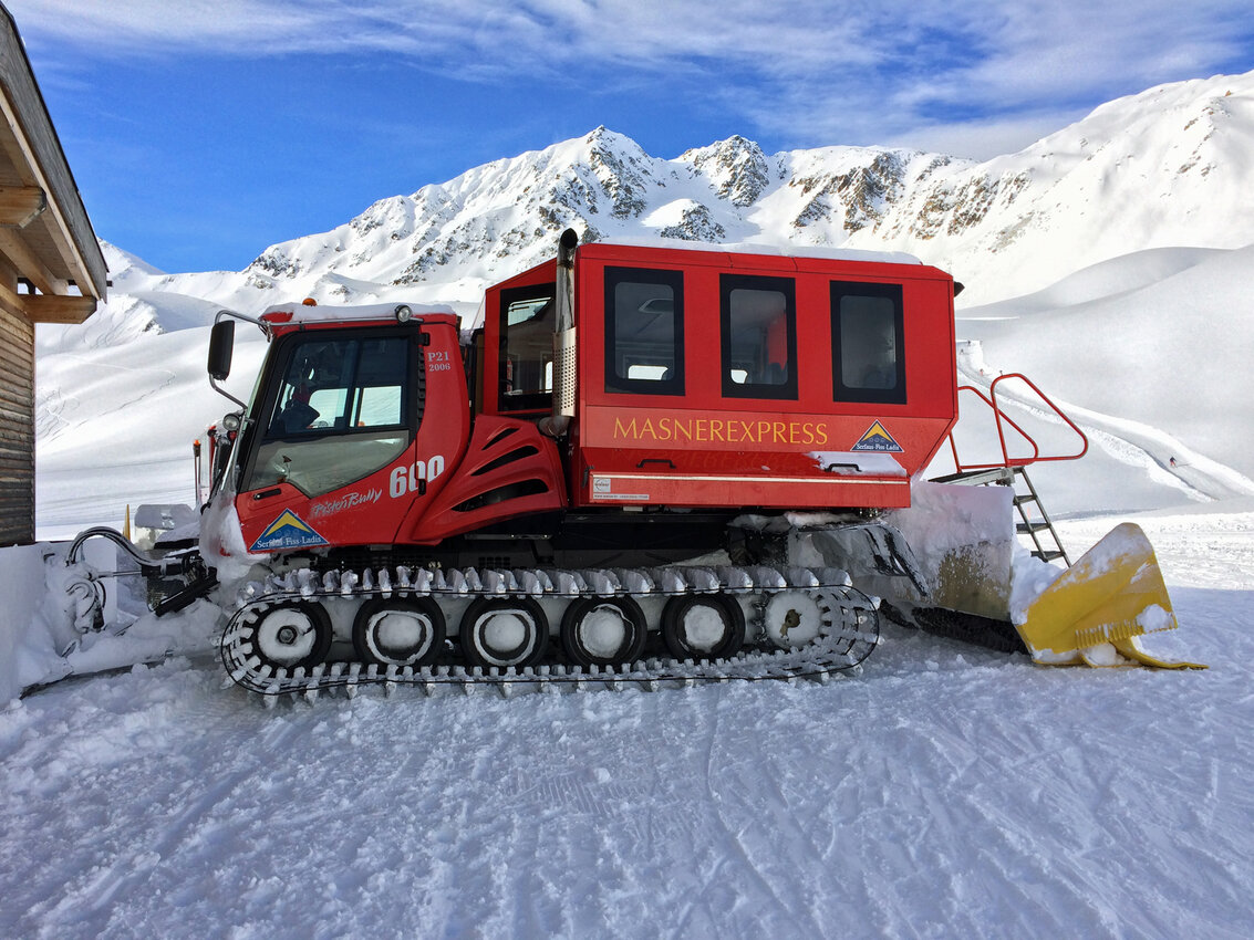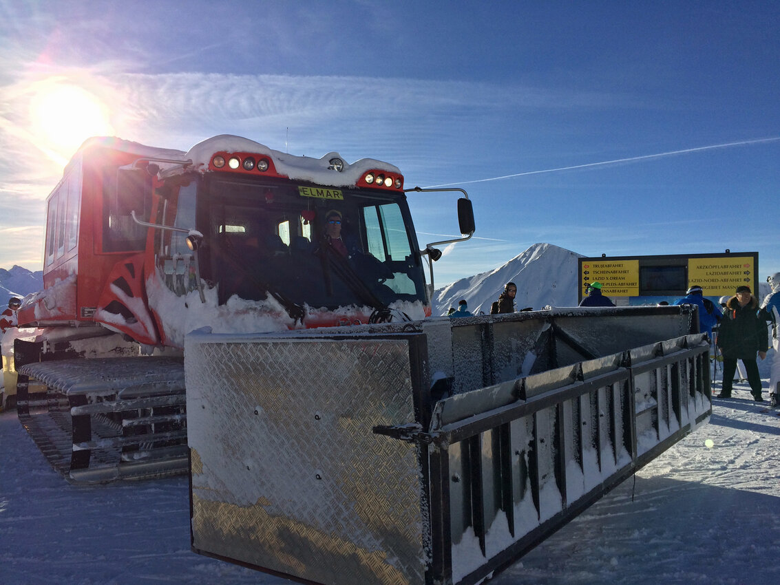 Nachdem wir einen leicht abfallenden Ziehweg befuhren, „kletterten“ wir hinauf zur Moosbahn auf 2.424 m. Die Steigung war ganz schön beachtlich, doch unser Fahrer Elmar beförderte uns sicher hinauf. Er tänzelte „leichtfüßig“ am Pistenrand entlang. Der ein oder andere Wintersportler blickte dabei ganz ehrfürchtig in die Kabine des Kletterkünstlers.