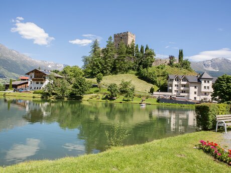 Wenn man von Ried kommend nach Ladis fährt, ist die mächtige Burg das Erste, was man von Ladis, dem kleinsten der drei Dörfer am Hochplateau, zu sehen bekommt. Gleich bei der Ankunft ein bleibendes Bild.