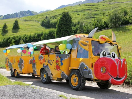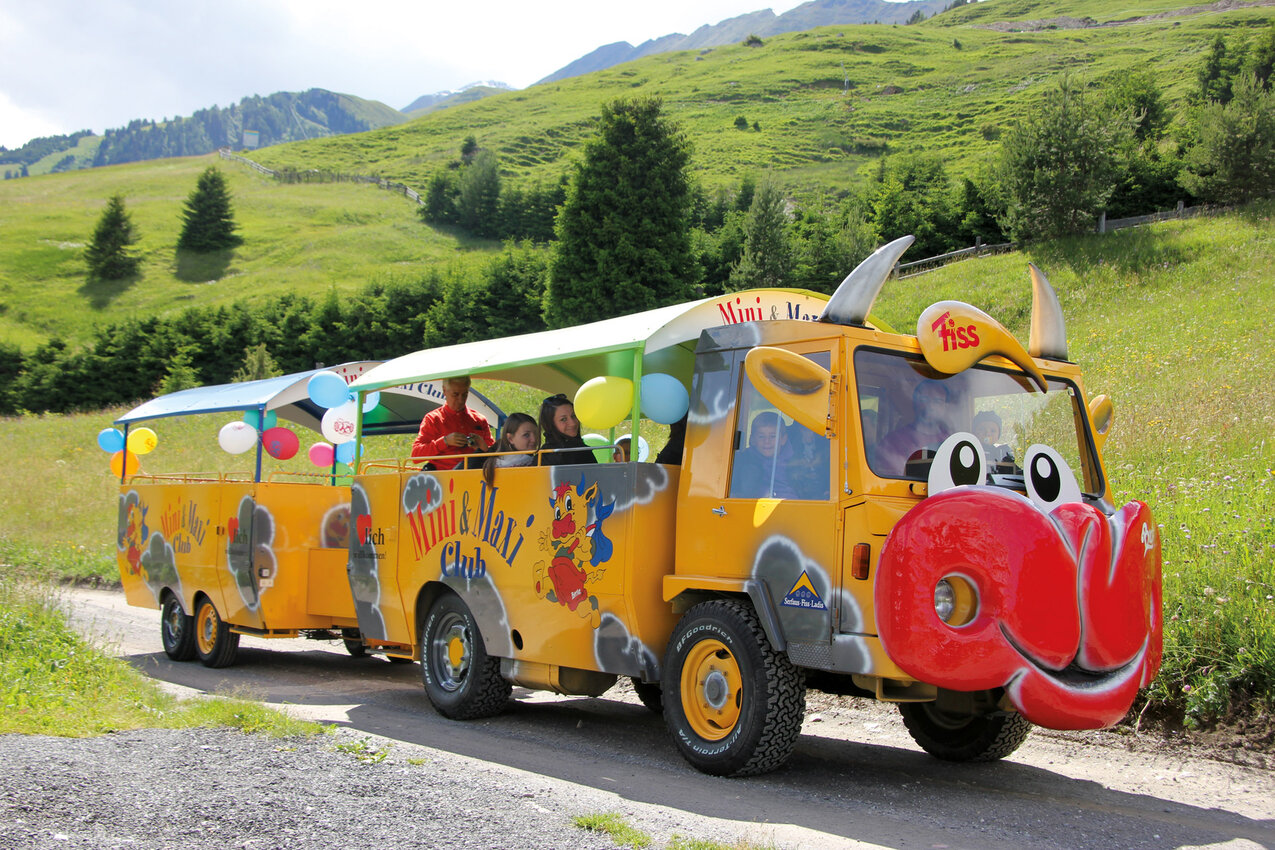 Berta die Kuh ist das Maskottchen von Fiss und weit über die Landesgrenzen hinaus bekannt. Unsere Berta ist im Sommer sehr aktiv. So wurde am 20.06.1998 die Flotte Berta in Fully’s Werkstatt geboren. Ein Schlepper, welcher in vielen Arbeitsstunden umgebaut wurde und jetzt für leuchtende Kinderaugen sorgt. Die Flotte Berta holt die Kinder von Montag bis Freitag an mehreren Treffpunkten in Fiss ab und bringt diese zum Mini&Maxi Club. Es gibt auch mehrere Ausflugsfahrten unter der Woche.