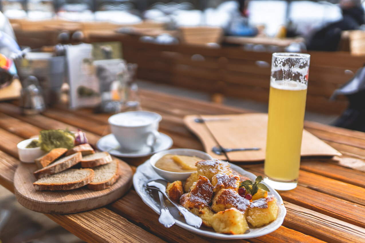 Zu Mittag trafen wir uns dann dort zur Mittagsrast wieder. Überall um uns herum saßen Familien mit Kindern. Einige besuchten bereits die Skischule, einige waren dafür noch zu klein. Stattdessen fegten sie mit dem nahegelegenen Familien-Coaster-Schneisenfeger, einer Sommerrodelbahn, mit bis zu 40 Kilometern die Stunde gemeinsam mit Oma und Opa ins Tal.