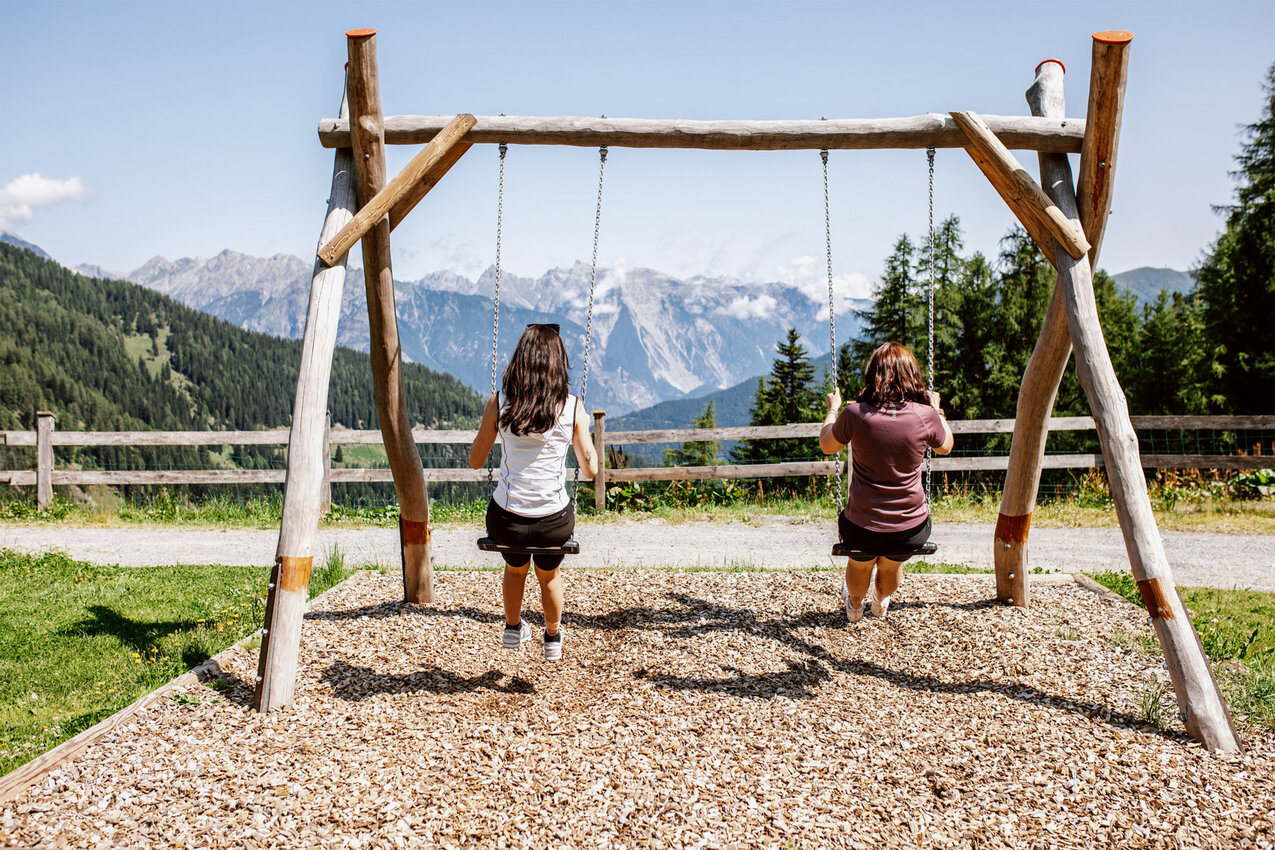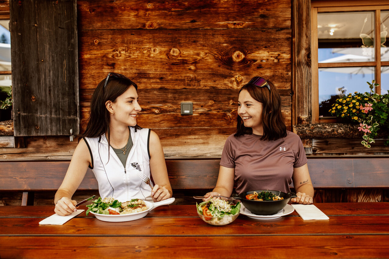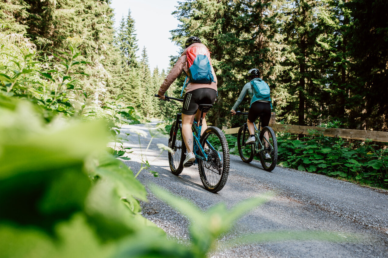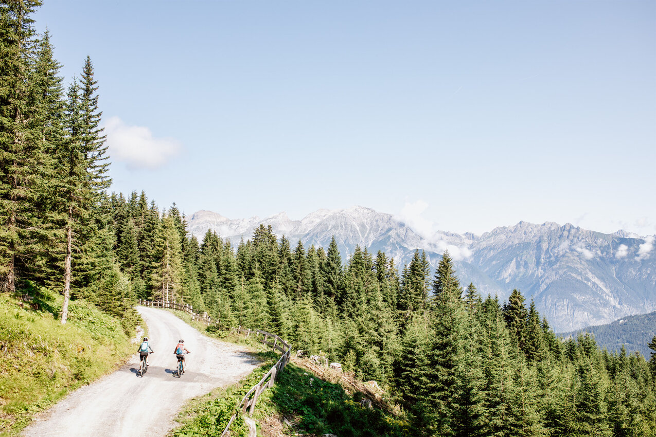 - Rückfahrt über den Forstweg, alternativ auch über Trails. Wer die Almbahn zur Auffahrt nutzen und auf den Zwölferkopf am Fisser Joch möchte, muss ein Seilbahnticket lösen.