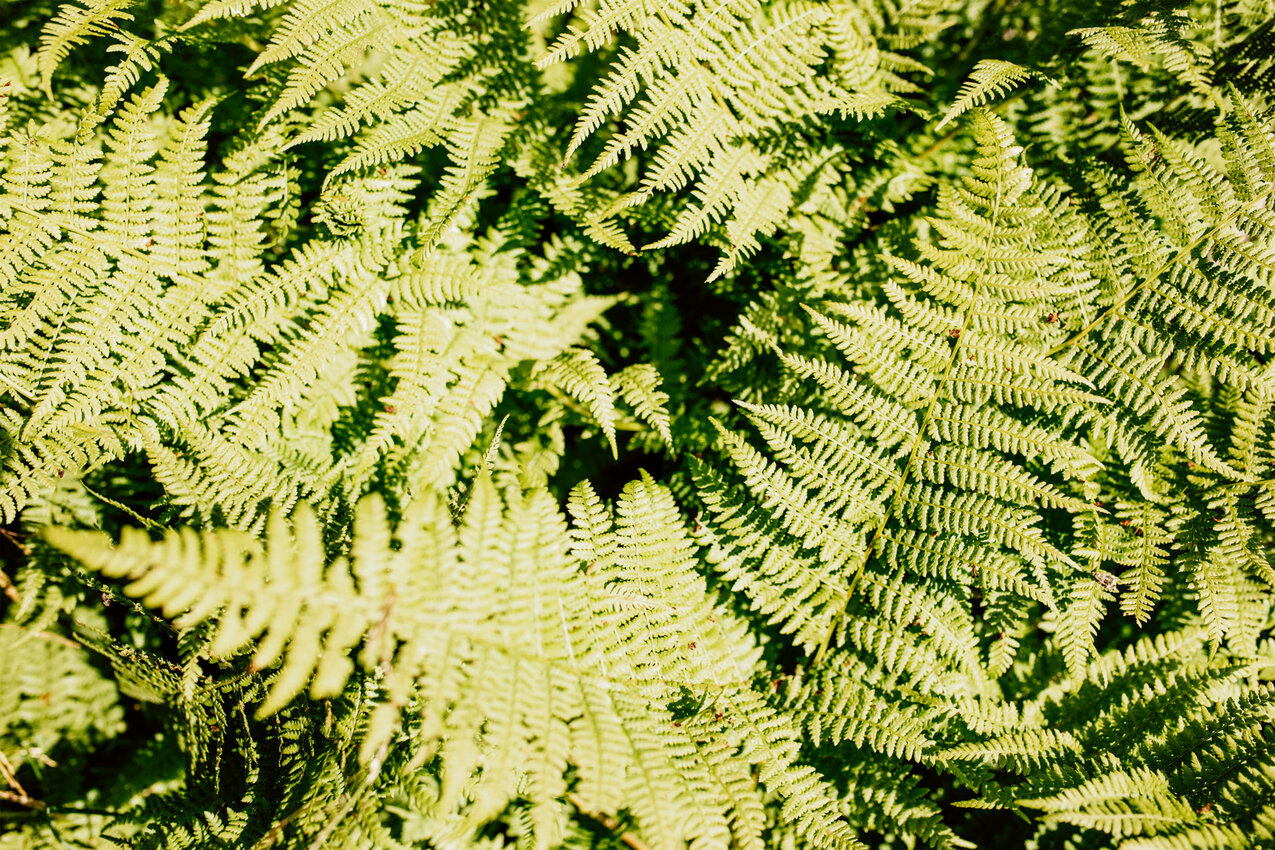 Kurz nach der Almbahn zweigt der Weg in Richtung Urgsee ab. Der Weg ist immer noch breit, aber die Vegetation verändert sich: Neben dem Weg wachsen nun große Farne und Baumbart hängt in dicken Flechten von den hoch gewachsenen Bäumen - fast ein bisschen wie im Dschungel. Am Weg liegen nun größere Steine, mit vollgefedertem Bike ist das aber kein Problem. Nach wenigen Minuten lichtet sich der Wald und wir erhaschen den ersten Blick auf den wildromantischen Urgsee: Einsam liegt er im Tal, gespeist durch kleine Bäche, die von den steilen Wiesen abfließen. Was für ein schöner Platz!