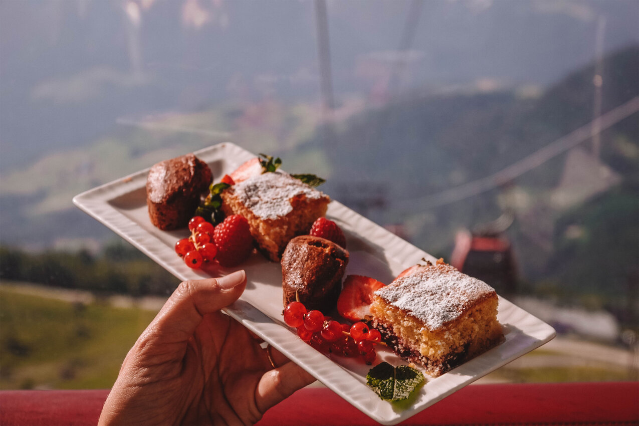 Zur Wahl stehen zwei mehrgängige kulinarische Höhenflüge: ein vielfältiges, liebevoll arrangiertes Frühstück mit frischen Produkten aus der Region oder ein feines Mittagsmenü, das mit alpiner Raffinesse überrascht. Serviert wird direkt in der Gondel, stilvoll gedeckt und in ganz privater Atmosphäre.