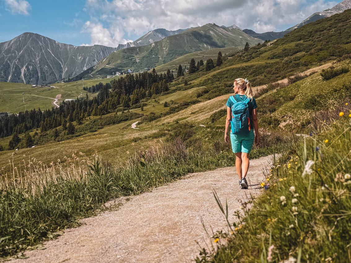 Gleich neben dem Sommer-Funpark Fiss startet der Panorama-Genussweg. Auf der Route durch blühende Almwiesen und schattige Wälder bietet er immer wieder atemberaubende Ausblicke auf das umliegende Bergpanorama. Die Strecke verläuft flach, bis auf einen kurzen Anstieg zum Komperdell. Hier erwartet dich das Murmliwasser, ein fantasievoll gestalteter Erlebnispark am Bach, in dem Kinder nach Herzenslust plantschen, spielen und die Natur entdecken können. Mit Wasserrädern, Flößen, Hängebrücken und dem Murmli-Höhlenlabyrinth ist Spaß für die ganze Familie garantiert.