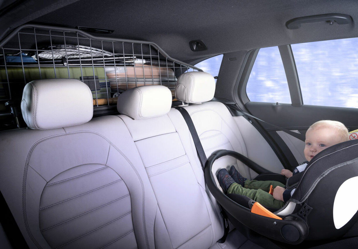 Wer ein kleines Kind an Bord hat, sollte bei der Ladungssicherung besonders sorgfältig sein, denn in einem Reboarder sind Kopf und Brust des Kindes Gegenständen aus dem Kofferraum schutzlos ausgeliefert. Die beste Wahl für Eltern ist deshalb ein Reboarder in Kombination mit einem Schutzgitter aus Stahl, das alles zuverlässig aufhält, was bei einem Unfall durch das Wageninnere geschleudert werden kann.