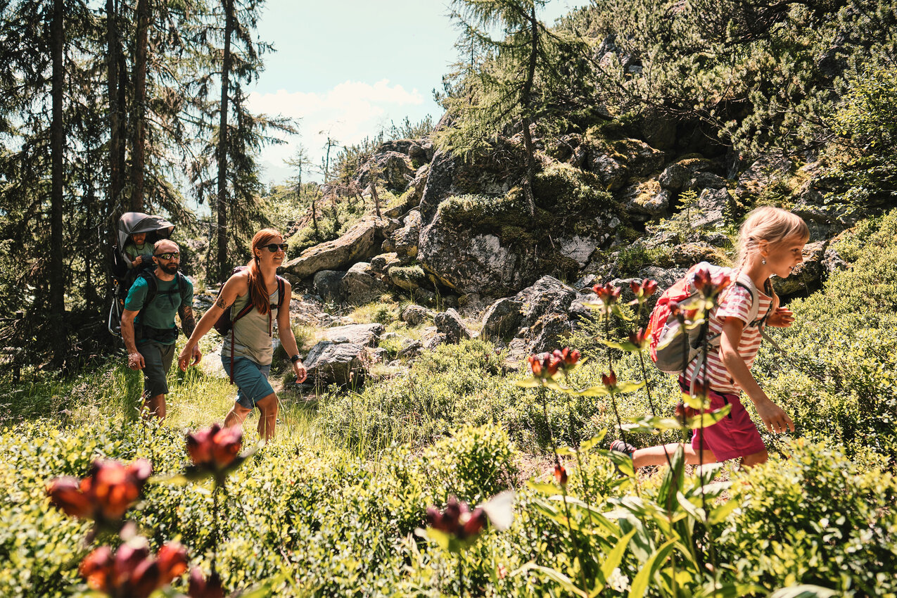Beginne mit kleinen, leichten Touren und steigere sie allmählich, damit die Kinder nicht überfordert sind. Passe die Route dem Alter und der Kondition des Kindes an. Achte darauf, dass die Kinder nicht zu weit vorauseilen, zurückbleiben oder abseits der Wege laufen. Insbesondere in steilem Gelände kann ein Fehltritt schwerwiegende Folgen haben. Um die Kinder aktiv einzubinden und ihre Aufmerksamkeit aufrechtzuerhalten, kannst du sie spielerisch über die Tier- und Pflanzenwelt informieren sowie über die Grundlagen des sicheren Wanderns. Zeige ihnen die Schönheit der Berge und den Spaß an der Bewegung in der Natur. Das Wandern kann so zum Familienerlebnis werden!