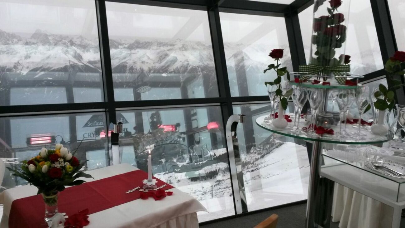 Zuvor werden allerdings noch die wunderschönen Hochzeitserinnerungen auf einzigartigen Bildern festgehalten. Menschen die mit der Sonne um die Wette strahlen, die imposante Bergwelt von Serfaus-Fiss-Ladis im Hintergrund und der verspiegelte Crystal Cube. Ein unvergessliches Hochzeitserlebnis im kleinen Kreis.