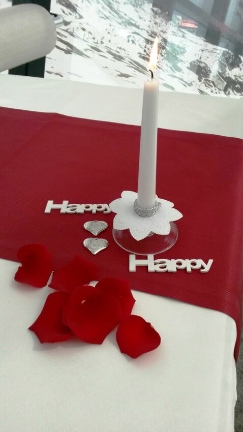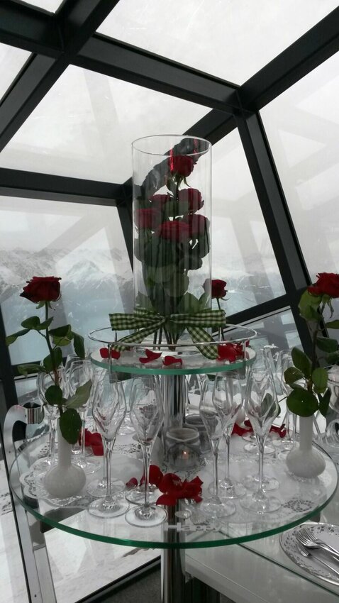 In knapp eineinhalb Stunden findet die nächste Hochzeit statt. Heute in der Früh habe ich alles was ich brauche zusammengepackt und anschließend bin ich von einem Pistenbully-Fahrer bei schönem Wetter zum Cube chauffiert geworden. Mit schönen Rosen, silbernen Herzen und anderen Dekoutensilien habe ich unser Standesamt in eine einzigartige Traulocation verwandelt.