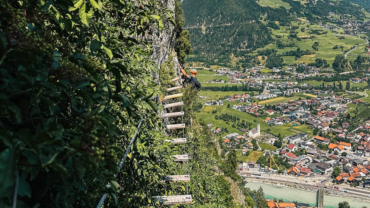 Abenteuerlustige können an der Burg Laudeck drei beeindruckende Klettersteige mit Schwierigkeitsgraden von A bis D erkunden, die spektakuläre Ausblicke auf die umliegende Landschaft bieten. Mit einem Guide, der nochmal eine schöne Einführung gibt, habe ich den blauen ("Via Claudia Augusta") und den roten Klettersteig ("Ponds Laudes Klettersteig") gemeistert, wobei der blaue mit Holztritten, Kletternetz und einer wackeligen Brücke mein Highlight war. Alle Routen enden am Gasthof Rauth-Hof neben der Burg. Eine Ausrüstung, einschließlich Helm, Klettergurt, Klettersteigset und geeigneten Schuhen, ist erforderlich. Wer das Klettersteigerlebnis mit einem Guide buchen möchte, kann dies über den Tourismusverband tun – absolute Empfehlung! Ladis ist bequem per Gondel oder Wanderbus von Serfaus oder Fiss aus erreichbar und der Zustieg vom Lader Schlossweiher dauert etwa 10 Minuten.