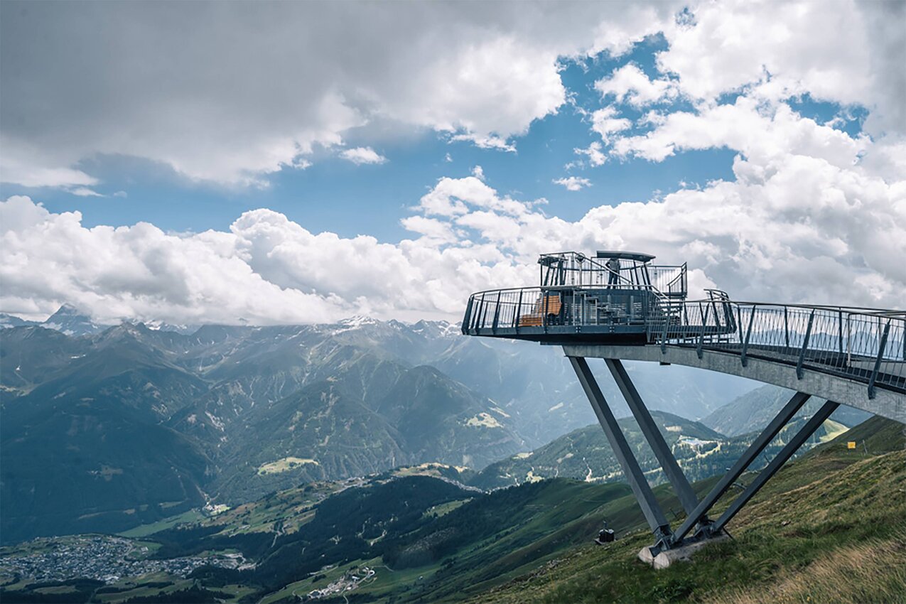 Die Z1 Aussichtsplattform am Zwölferkopf auf 2.600 Metern bietet schöne Panoramablicke auf die Alpen. Von hier aus lassen sich unter anderem die höchsten Berge von Deutschland und Italien bestaunen. Die Plattform befindet sich nahe der Bergstation der Schönjochbahn. Du erreichst sie von dort aus über einen 45-minütigen Fußmarsch über den Goldenen-Mann-Weg.
