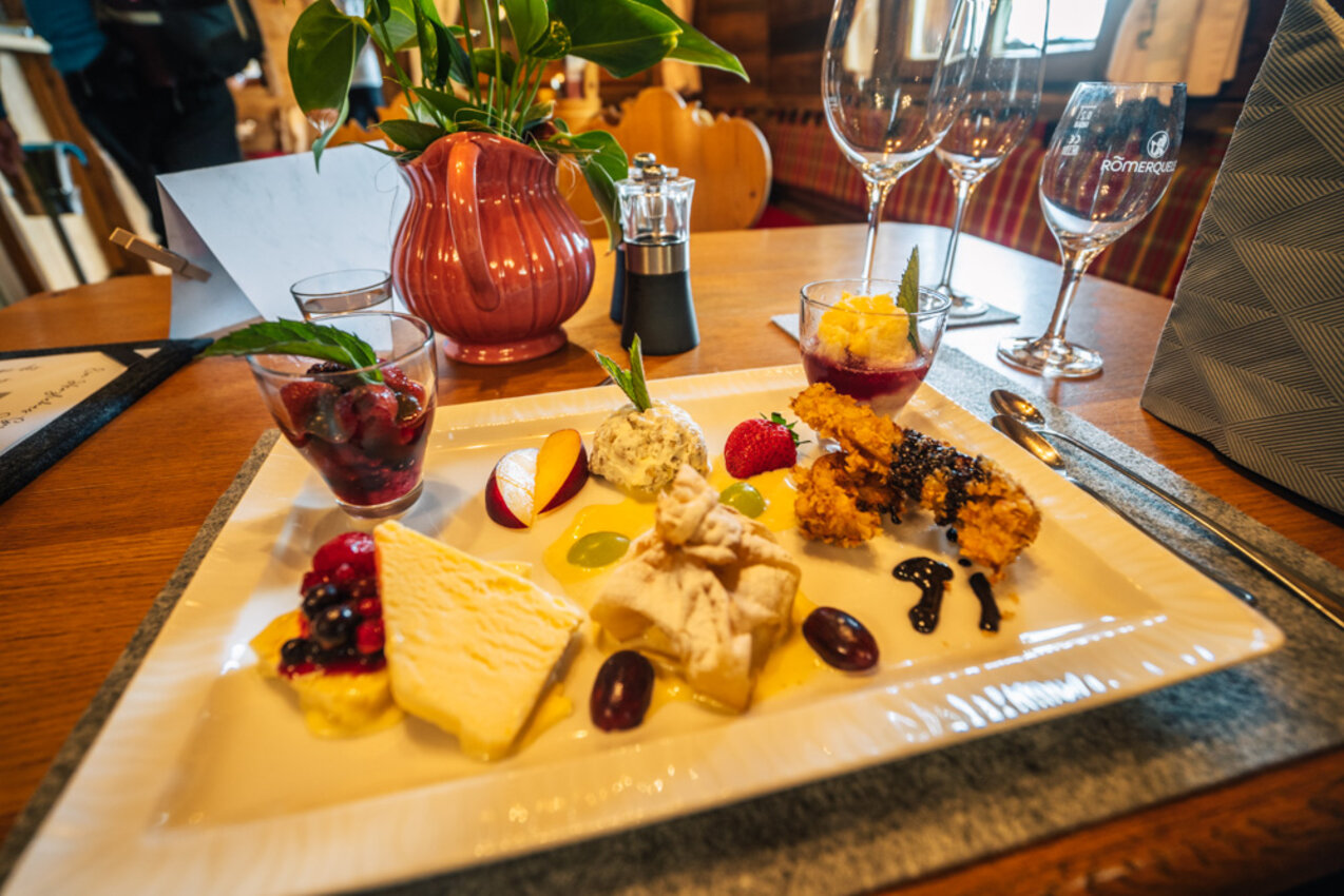 Wandern & Genießen: Die Kulinarik-Wanderung war definitiv ein Highlight. Hier kann man nicht nur die Wanderroute, sondern auch die Einkehrstopps für das regionale Vier-Gang-Überraschungsmenü selbst auswählen. Was das genau heißt? Du wanderst auf der Route und die Gastgeber der Restaurants bereiten entweder den Aperitif und die Vorspeise, den Hauptgang oder die Nachspeise zu. Es stehen sechs Bergrestaurants zur Auswahl.
