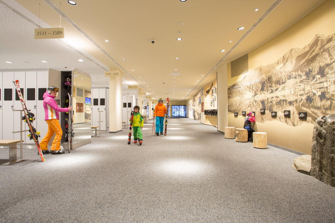 Zudem findest du im Komfort-Skidepot Fiss eine Möglickeit, deinen Zwerg zu versorgen. Benutze einfach direkt beim Seilbahnparkplatz den Eingang ins Skidepot. Im Damen-WC können die Kleinsten in einer Familientoilette mit Wickeltisch gut versorgt werden. Das Skidepot zählt nebenbei erwähnt zu einem der modernsten und innovativsten in der Wintersportbranche. Unglaubliche 4.700 Stellplätze ermöglichen hier einen stressfreien Urlaub. Weltneuheit: Die Kästen verfügen über eine automatische Selbstreinigung, die in der Nacht aktiviert wird. Zudem können sich Gäste über eine trockene Ausrüstung in der Früh freuen, da die Schränke über ein eigenes Lüftungssystem mit Hitze und Frischluft verfügen. Die Region denkt hier wirklich an alles. Während Mama und Papa die Ausrüstung verstauen, wissen sie ihre Kinder gut umsorgt. Zahlreiche interaktive Spielemöglichkeiten zaubern den Kleinen mit Sicherheit ein Lächeln ins Gesicht. Langeweile hat hier keine Chance!