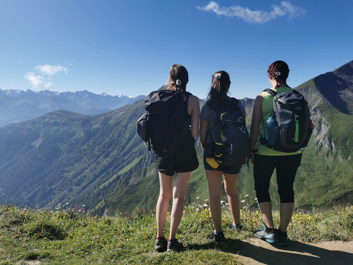 An einem heißen, nahezu wolkenlosen Augusttag, machten drei Freundinnen und ich uns auf den Weg, um auf dem Schmugglersteig vom Lazid zum Hexensee zu wandern. Mit einer der ersten Gondeln um 08.30 Uhr ging es für uns mit der Komperdellbahn hinauf auf den Lazid. Nachdem wir noch kurz innehielten, um die umliegende Bergwelt zu bestaunen, wanderten wir voller Elan und Vorfreude los. Der Einstieg des Weges ist vom Lazid aus durch Hinweisschilder gut gekennzeichnet und somit einfach zu finden. Schon bald erreichten wir die ersten Infotafeln und begaben uns während des Lesens auf eine Reise in die Vergangenheit.