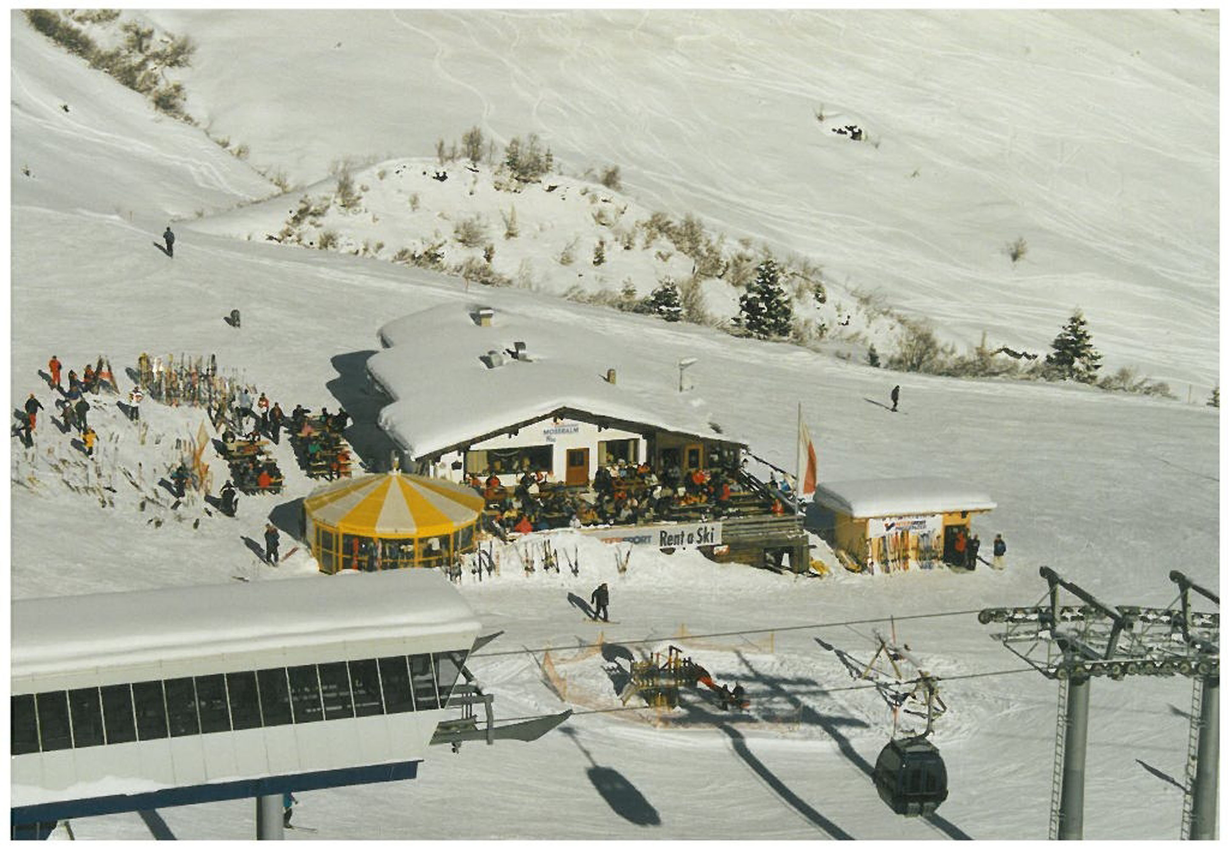 Nach dem ersten Winter von Serfaus-Fiss-Ladis wurde in weitere QUALITÄTSVERBESSERUNGEN im Skigebiet investiert. Auch die GASTRONOMIEBETRIEBE bekamen ein Face-Lifting. Blick auf Fiss: 1969 wurde auf der MÖSERALM eine kleine Jausenstation errichtet. Im Jahre 2000 hatte diese schließlich ausgedient und es entstand ein modernes Bergrestaurant mit Selbstbedienung.