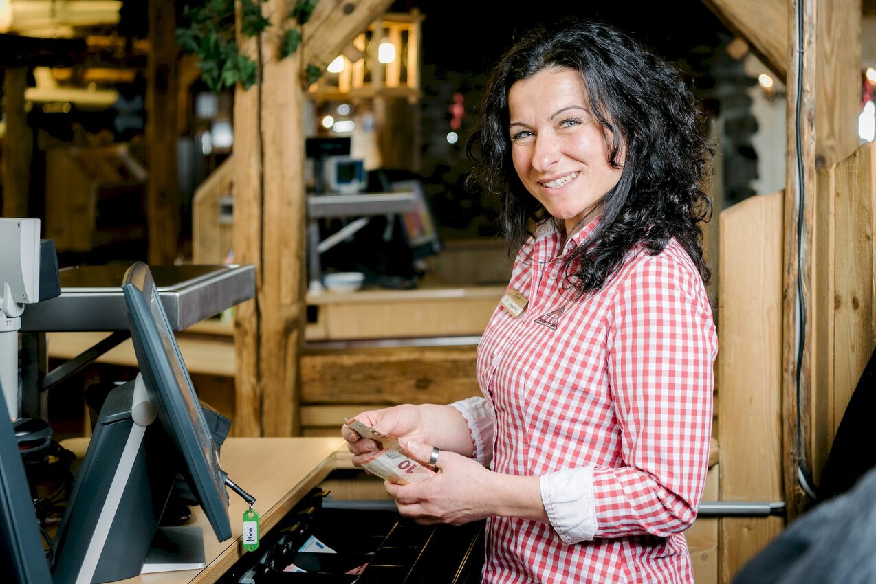 Verkäuferin Margot teilt die Meinung von Markus: „In meinem Verkaufsladen in Serfaus bin ich weit mehr als nur eine Mitarbeiterin. Ich fühle mich als TEIL der großen Familie. Von meinem Arbeitgeber Franz kann ich wirklich alles haben. Es MENSCHALAT halt, würden wir auf Tirolerisch sagen.“
