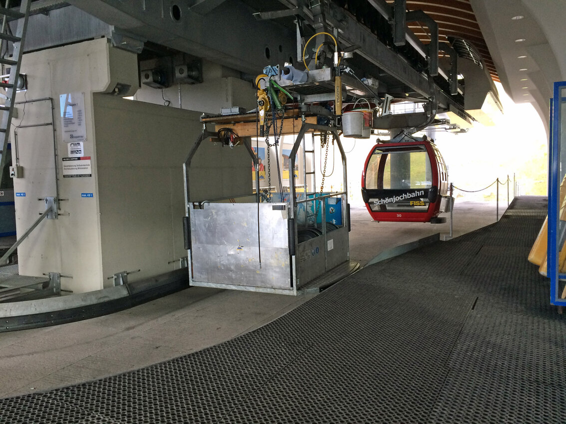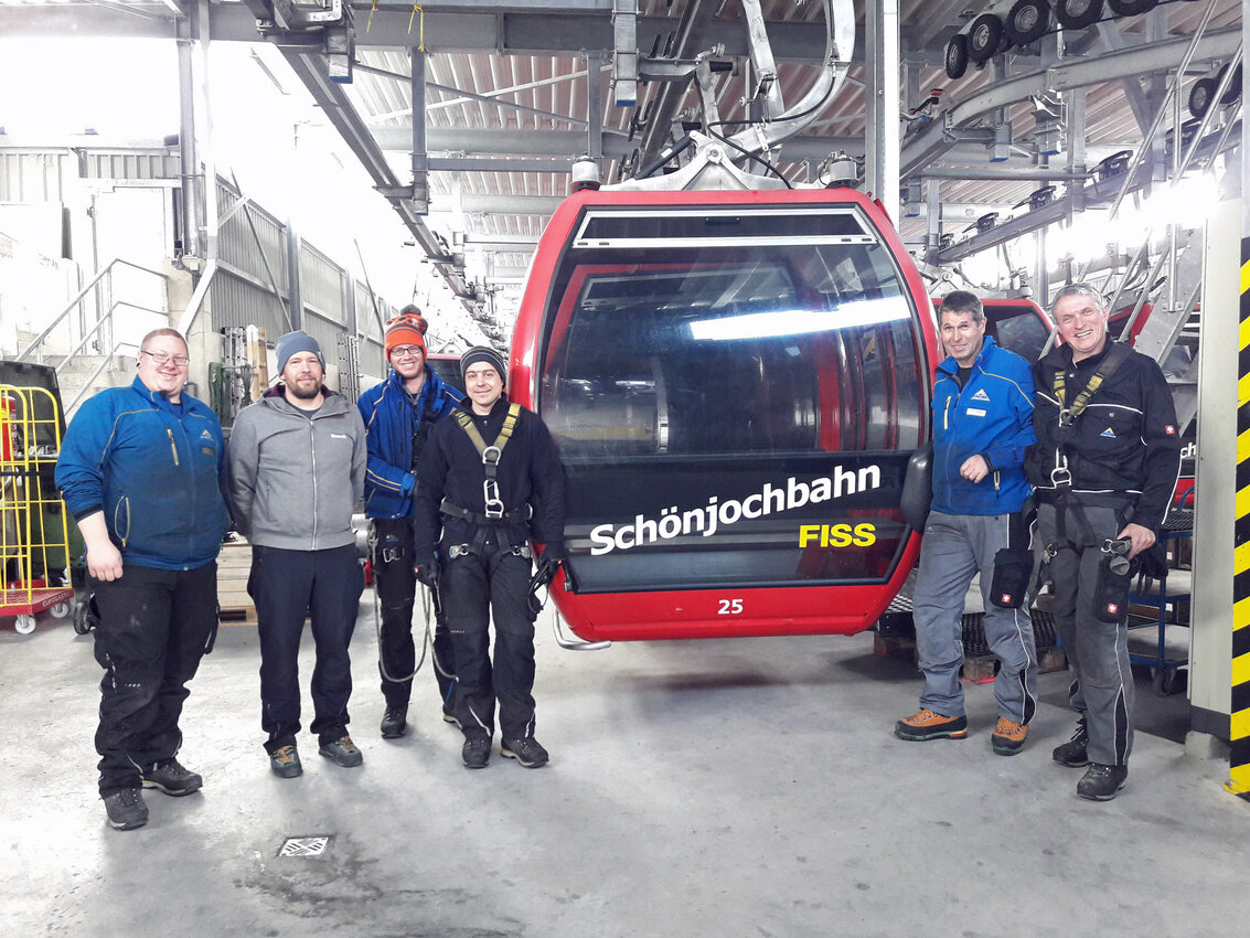 Um 8.00 Uhr traf ich mich mit Martin Steinlechner, einem der drei Betriebsleiter der Bergbahnen Fiss-Ladis. Martin erzählte mir, dass insgesamt 26 Mitarbeiter bei den Revisionen der Bahnen mitarbeiten. Allein bei der Schönjochbahn, die aus zwei Sektionen besteht, sind zwischen sechs und zehn Mitarbeiter für die Revisionsarbeiten zuständig. Sobald die Saison wieder beginnt, wechseln einige treue Mitarbeiter in den Saisonbetrieb der Bergbahnen und sind für die Betreuung der Gäste oder, unter anderem, für die zwei Genussgondeln (im Sommer) zuständig.